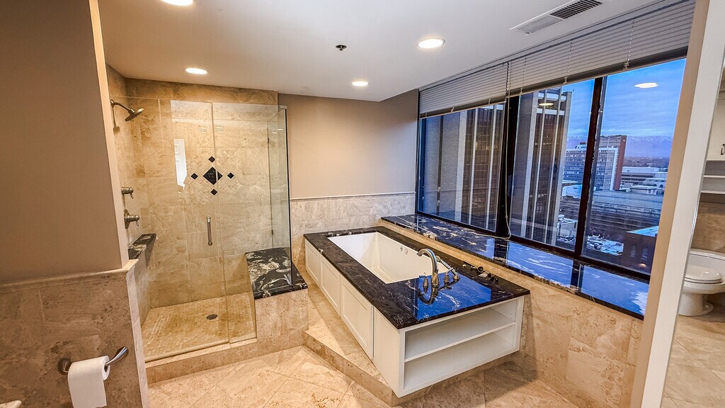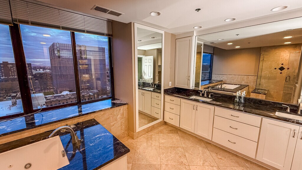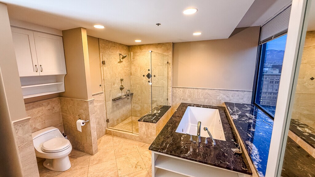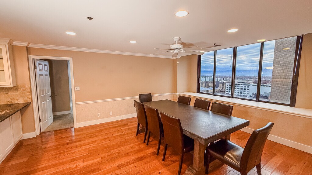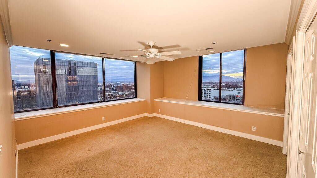 Welcome home to a high-floor condo in the heart of downtown Salt Lake City. Renovated and positioned well above the street, this 2 bedroom, 2.5 bath residence delivers comfort, privacy, and elevated city living. The open layout is filled with natural light from large windows that frame wide, south and west-facing valley views. Living and dining spaces feel composed and intentional. Easy to live in, easy to host in. The kitchen pairs stainless steel appliances with granite countertops, while an in-unit washer and dryer add everyday practicality. The primary suite includes independent temperature control for added comfort. Both bedrooms are well-proportioned, with a half bath conveniently placed for guests. Positioned high above the street, the home remains impressively quiet, offering a sense of separation from the energy below. Utilities included: water, sewer, trash, and high-speed fiber internet (500+ Mbps). Electric billed separately. Residence Highlights - South and west-facing orientation with open valley views - Large windows and abundant natural light - Stainless steel appliances and granite countertops - Central heating and air conditioning - Zoned temperature control for the primary suite - In-unit washer and dryer - One secured, access-controlled parking space - Building Amenities - Rooftop hot tubs and grilling areas (north and south towers) - Indoor pool and hot tub - Fully equipped fitness center - Racquetball court - Billiards room, library, and large community lounge Located just steps from City Creek Center, Eccles Theater, TRAX stations, Capitol Hill, Temple Square, and the Gallivan Center, this home places you at the center of downtown while maintaining a sense of separation and calm. Thanks for reading -Mike