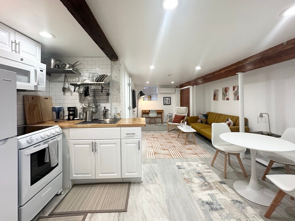 FULLY FURNISHED STUDIO on the ground level with private laundry. Utilities included (water, electricity, heating, internet) EASTSIDE, HOPE. Walk to Hope St's Restuarant's, Cafe's, and Specialty Shops. Quick Jump to Whole Foods, DWTN, HWY, Farmers Market. Call/Text for a Showing.
