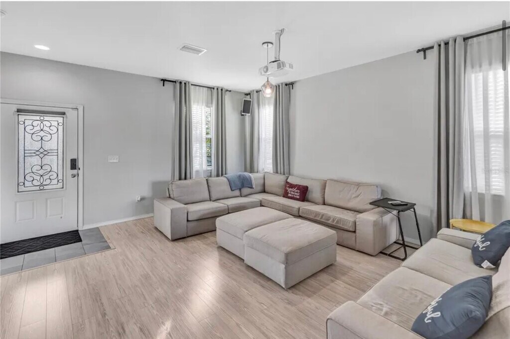Partially furnished 3-bedroom, 2.5-bath home located in a gated Riverview community! This beautifully maintained, light-filled home offers a modern open-concept layout with granite countertops and luxury vinyl plank flooring throughout-NO carpet. The main level features a spacious family room seamlessly connected to the dining area and kitchen, perfect for everyday living and entertaining. All appliances are included, including washer and dryer with convenient upstairs laundry, plus a half bath downstairs for guests. Upstairs you'll find three generously sized bedrooms, including a primary suite with double vanity, walk-in closet, and a large soaking tub. Both full bathrooms feature relaxing tub/shower combinations. Enjoy an open backyard, a one-car garage, and access to a community pool, with a large open play field directly across the street. Prime location close to I-75, Tampa, beaches, hospitals, shopping, dining, and more-everything you need is just minutes away. Move in and enjoy stress-free Florida living at its best!