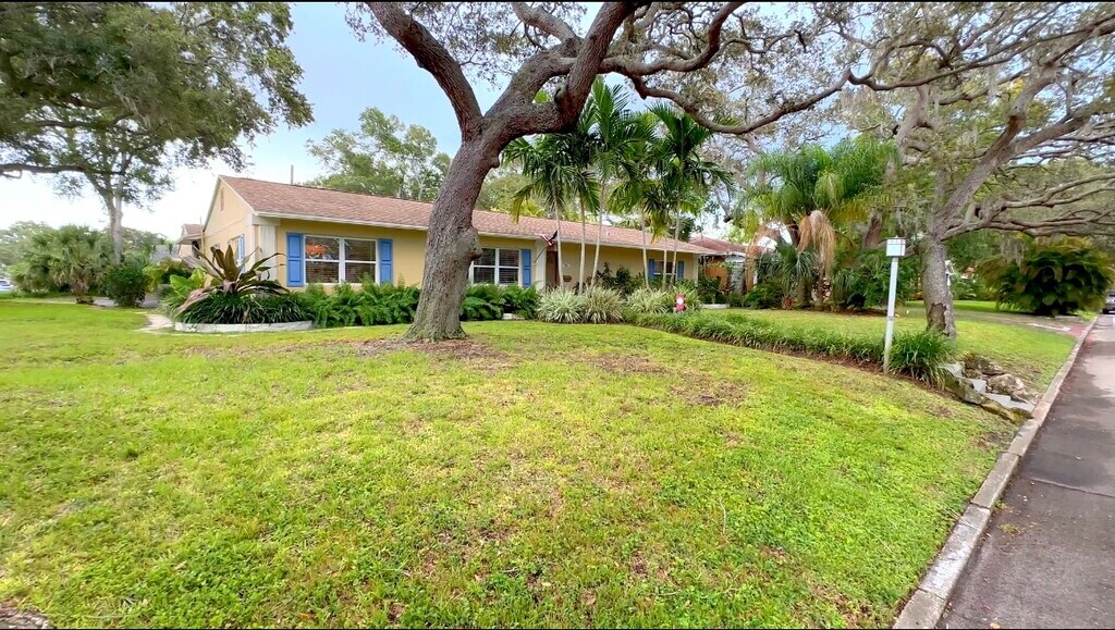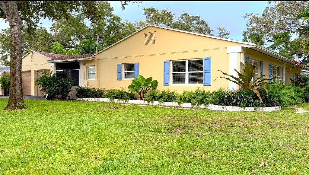 Rare opportunity to occupy this stunning single level corner lot POOL home! 1916 square feet of indoor living space with an additional 700 square foot Florida room built for entertaining! Interior features adorable mid century kitchen with ample room for seating. Spacious living room with dining area, indoor laundry (washer/dryer included), three large bedrooms, all en suite. Two full retro style (one with tub) bathrooms plus additional outdoor bathroom/storage area. Two of the bedrooms have access directly to the Florida room. All furniture comes with the Florida room, including plenty of seating, full dining table, gas grill, lounge chairs and full bar! Plenty of room to store your kayaks and paddle boards on the side yard. Sparkling pool, outdoor ZEN shower and landscaping lighting for beautiful evenings. Home is equipped with ring camera system on both front and side doors. A/C and ceiling fans. Minutes to downtown St.Pete and beaches. Rent includes weekly landscaper and pool service. Pet friendly. No smoking. Available now! Don't wait!
