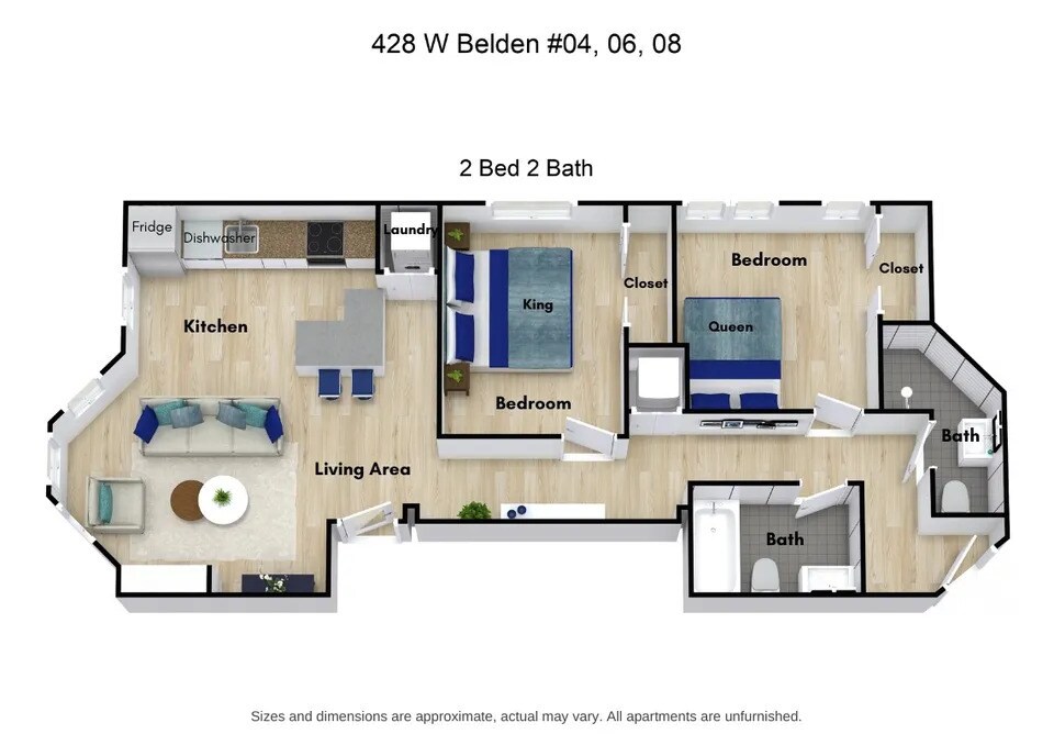 Apartment Unit: CApartment Model: C - 441 W Belden Ave$4,0502 Bedroom, 2 Bath, 1100 sq ftAvailable April 1, 2026![]()