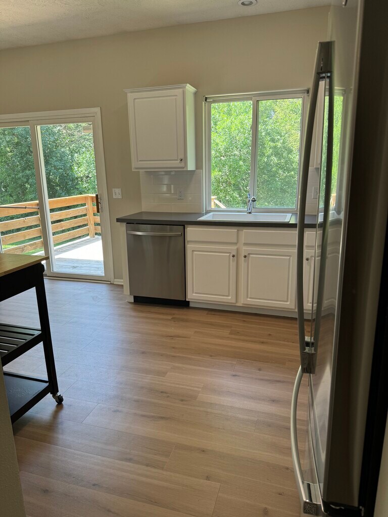 ITS BEAUTIFUL! FULLY RENOVATED and ready for new tenants! ALL NEW EVERYTHING! Including wood flooring, carpet, fresh paint, countertops, brand new stainless steel appliances, LED light fixtures, doorknobs and cabinet pulls, freshly sanded and stained deck and soon to be: Beautiful landscaping! It's the perfect, clean home ready for you! Fabulous 1,436 sq ft. 2+ Bed, 2 Bath, 3 car townhome has a totally private, tree lined back yard in the Wood Creek Subdivision of West Omaha (180th and F Street). This cozy split-level townhome has 9' ceilings with ceiling fans (living room and both bedrooms), a gas fireplace, plenty of storage space (including a 3 stall garage) and SO MUCH MORE! Master bedroom: 13' x 13' with a large walk-in closet (8' 9" x 6' 2"). Master bath: Double vanity, glass shower doors and a full size vanity mirror. Main hall/bath has tub/shower combo, new vanity, and a full size vanity mirror. Convenient main floor stacked washer/dryer combo included. Kitchen has new countertops and xl sink, LED lighting and an amazing treelined view. Appliances: ALL NEW Stainless Steel. Full, finished lower level with large flex space (perfect for a third bedroom, play space, workout equipment and/or storage) and a walkout slidingglass door to a large patio. Storage: Large area under the stairs off lower entry as well as a full size closet in basement hall. Deck/Patio: freshly sanded upper deck, lower patio and nice size tree lined yard. Lower patio has larger hooks for hanging bikes and smaller hooks for lighting and/or plants. Bonus: Full pegboard wall and work lights in garage for workbench area with shelving along two walls for extra storage or craft area. Great neighbors and a quiet neighborhood within walking distance to top rated Millard elementary school, Zorinsky Lake and ball fields. Fantastic tree lined backyard provides complete privacy and beautiful scenery. Conveniently located less than 1 mile from HyVee grocery, Scooters coffee, restaurants and salons, Walmart and Lowes. 2 miles from The Shops at Legacy, 4 miles from Village Pointe shopping center and 15 minutes from the Nebraska Crossing outlet mall. INCLUDED: Lawn Care Snow Removal over2” City of Omaha trash and recycling Optional furniture: please inquire Tenant pays for utilities: OPPD and MUD. Rent due on 1st of the month. Security deposit of 1 month's rent required. NO SMOKING of any kind No pets Showings will be available by appointment, serious inquiries only. Applications reviewed on a first come basis. Contact Lisa to schedule a showing today!