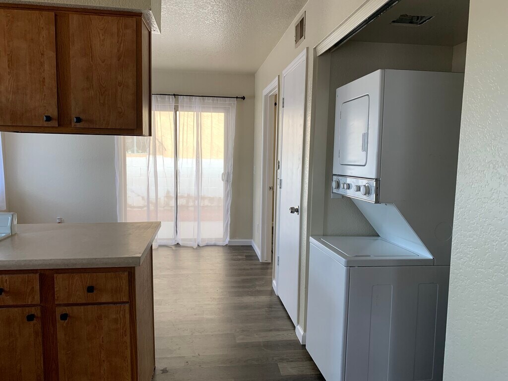 The unit is an end unit, part of the 4 plex in a very quiet neighborhood. Single level, 2 bedroom 2 bath, comes with individual washer/dryer, covered parking, storage sheds and backyard. Big backyard measures at 270 sqft. This property was recently renovated with all new flooring, appliances. It comes with all appliances, including fridge, stove, microwave, washer & dryer. Since it has 2 bathrooms, great to co-sign with a room-mate for 1 bedroom, 1 bathroom option. All adults plan to live in this unit should apply. This property is located in the desirable neighborhood of west Mesa and close to everything imaginable. Residents enjoy the accessibility to downtown Mesa's museums, theaters, and nightlife: ASU, Mesa Riverview, Tempe Marketplace, Cubs Stadium and freeway access. The unit is not furnished, pictures are for illustration purpose only. Property is directly managed by owner, no other hidden fees, direct support from owner within 24 hrs if there're any issues with the unit. Residents pay for electricity, water & trash. Cats and Dogs are welcome. $200 one time pet fee (per pet) is due at the time of move in. No monthly pet fee. Annual Lease: $1450 6 months Lease: $1500 month to month: $1550