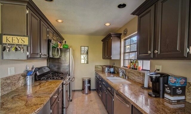 Tucked into the foothills of the Santa Monica Mountains, yet minutes from Los Angeles, this eclectic 4-bedroom, 3-bath retreat offers sweeping mountain and valley views, and effortless indoor-outdoor living. Vaulted ceilings, sunlit interiors, and warm textures create a relaxed California vibe. The open layout features one bedroom on the main floor, and three on the lower level ideal for multi-generational living, working from home, or guest privacy. A spacious living room with fireplace flows into a formal dining area and a freshly updated kitchen with stainless steel appliances, granite countertops, and abundant storage. The primary suite opens to a covered patio lounge, perfect for sunrise coffee or relaxing sunsets. Outside, the private backyard feels like a retreat, complete with a furnished gazebo for reading, yoga, or intimate gatherings. Parking is easy with a two-car garage plus four additional driveway spaces. This property blends serenity with convenience, surrounded by hiking and biking trails, close to The Village at Woodland Hills, Whole Foods, Trader Joe's, and a scenic drive to Malibu's beaches. Schedule your private tour of 4440 Ensenada Drive and step into your own mountain sanctuary close to the city yet a world apart.