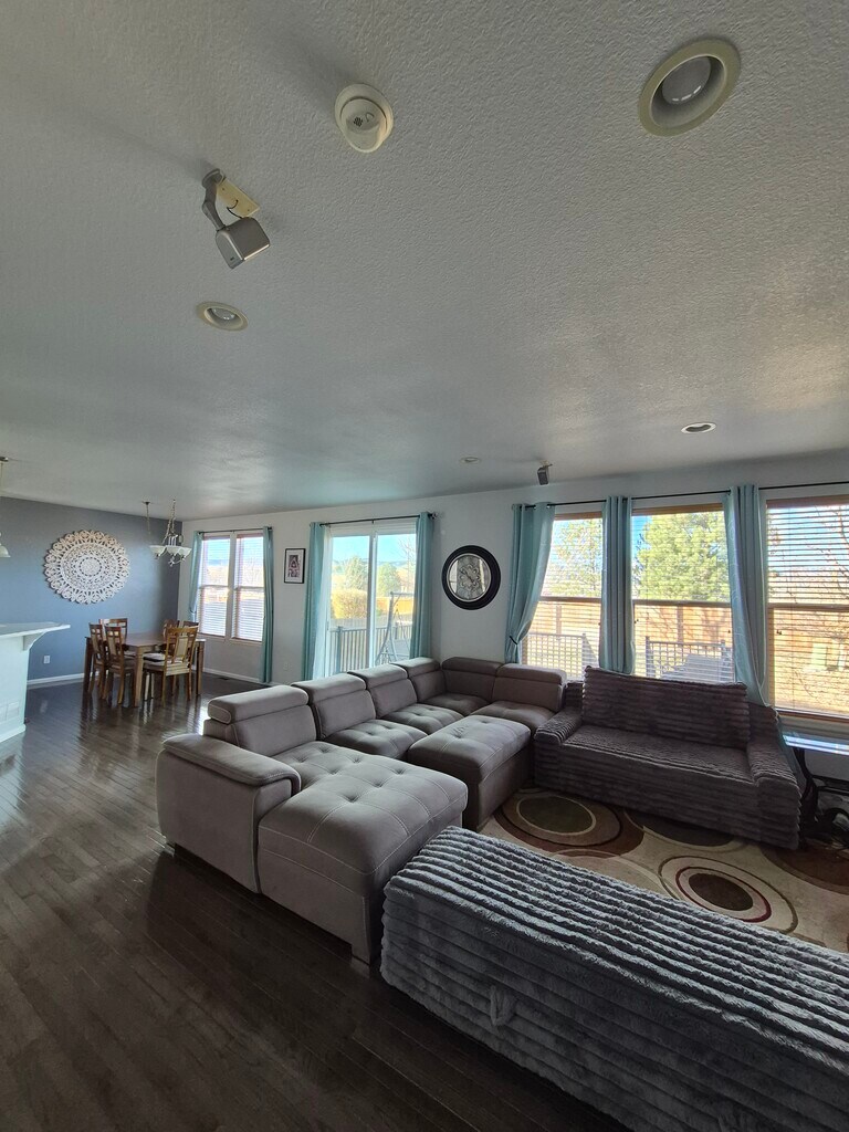 House has solar panels (already paid for) - so electricity bill stays low. All window coverings (shades, curtains and curtain rods) as shown in images are included. 5 bedrooms, 4 bathroom, 3 living rooms (main floor, basement, loft on 2nd floor) with a large kitchen, formal dining area and informal dining area, kitchen pantry (main floor) and storage room (basement). Backyard has a large composite deck with mountain views. Master bath has 5-piece bath along with a large walk-in closet. Backyard has three vegetable gardens so you can grow veggies if you like. Main floor is all hardwood, and the rest is carpet. (Home comes with refrigerator, gas cooktop, oven, microwave, dishwasher, washer and dryer). Other highlights -- Very close to D'Evelyn Hr/Sr School, highway 285, and highway 470, Red Rocks, trails, hikes, parks. Almost all stores are pretty close to the house (Costco, Walmart, Sams Club, King Soopers, Safeway, Target, Sprouts Farmers Market, and many more).