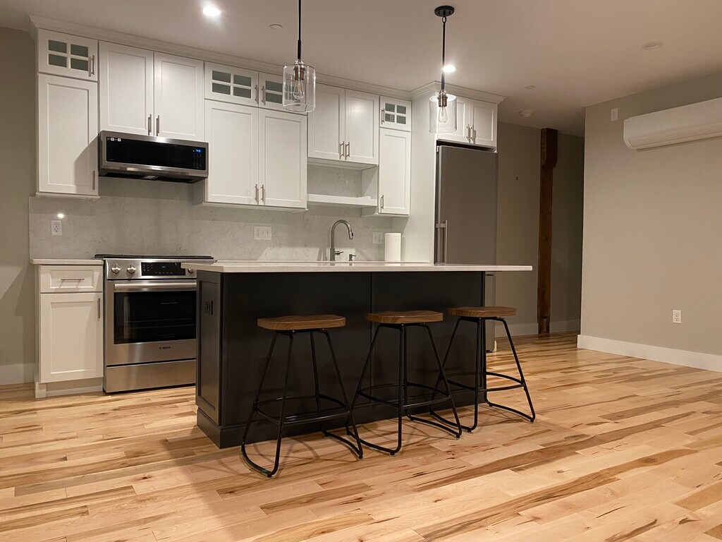 Beautiful new apartment in restored historic building on Market Street, in the heart of downtown Portsmouth, NH. Walk to everything.... Jimmys Jazz Club, the Music Hall, Prescott Park and all of the historic sites Portsmouth has to offer. This apartment has a cozy gas fireplace, full sized kitchen with high end appliances and quartz counters and backsplash. The bath has tiled floor and large shower. Miele stacked washer and dryer. High ceilings Huge deck (great outdoor space)! Secure keypad entry, heated hallway. A must see!