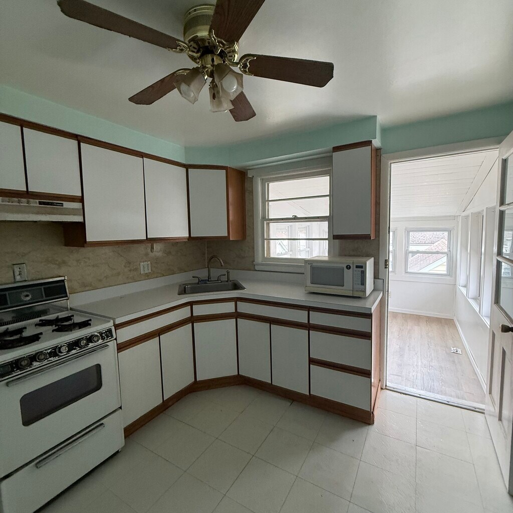 2 family home in quite neighborhood. Parking in driveway or street. Backyard. 1 block to town center; restaurants, food stores, liquor stores, pizzerias, salons, banks, Duncan donuts, Library, bakeries, cleaners, diner, etc. Living room & sun room newly painted.