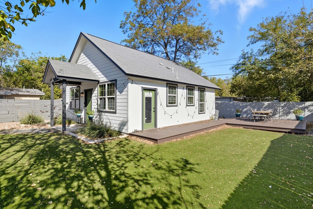 This charming 2-bed, 2-bath bungalow is tucked off the street for added privacy. Built in 2012, the home feels fresh and modern, with a full kitchen, bathroom, and appliance update completed in 2022. The open layout is ideal for entertaining, featuring a spacious deck just off the main living area. Both pets and owners will love the low-maintenance turf yard, which stays green year-round. The fully fenced yard provides excellent privacy and a great space to relax outdoors. Located less than five minutes from grocery stores, restaurants, schools, and shopping, and just around the corner from local favorites like Radio Coffee and Cosmic, the home offers easy access to South Lamar and South Congress. Downtown and UT are only 15 minutes away, and the airport is a quick 10-minute drive. The owner lives nearby and is available to help with any issues that may arise. Please refrain from visiting the property without an appointment to respect the privacy of current residents.