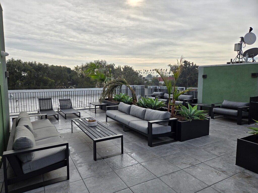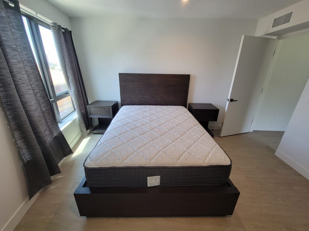 Thoughtfully furnished with essentials Sofa bed Queen-sized bed Open-concept layout Modern kitchen In-unit washer and dryer Coffee table Centrally located in a prime location in the heart of Los Angeles, 'The Hancock Luxury Flats' is a brand-new construction (2024) condominium residences that offer the ideal blend of modern amenities, central convenience, and tranquility in a quiet neighborhood. This fully furnished 1-bedroom condo is located on the third floor of a modern building with views overlooking Queen Anne Park. Thoughtfully furnished with essentials, the unit includes a sofa bed, queen-sized bed, coffee table, and dining area perfect for working professionals, travel nurses, or remote workers. The open-concept layout features large windows that fill the space with natural light, a modern kitchen, in-unit washer and dryer, and a balcony. Residents also enjoy access to a rooftop deck with city views and lounge seating. Situated in a peaceful residential neighborhood, the building is centrally located near Larchmont Village, Miracle Mile, and Pico Blvd with easy access to dining, shopping, and major hospitals. Minimum rental period is 1 month. Owner pays for HOA and all utilities. Free parking in assigned indoor parking lot. No smoking indoors. Smoking allowed on balcony. Hide