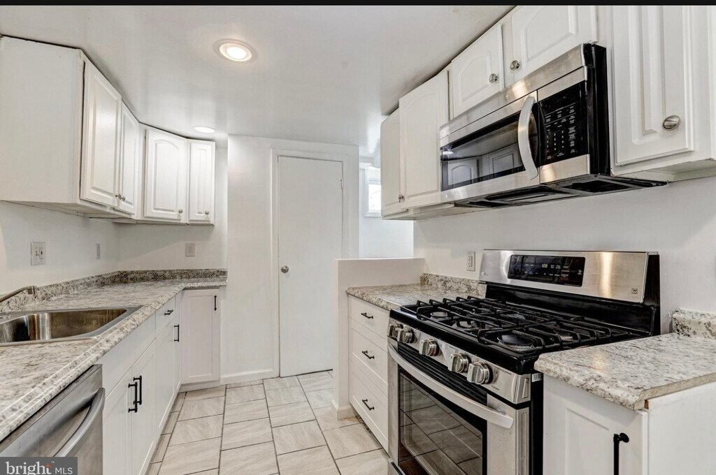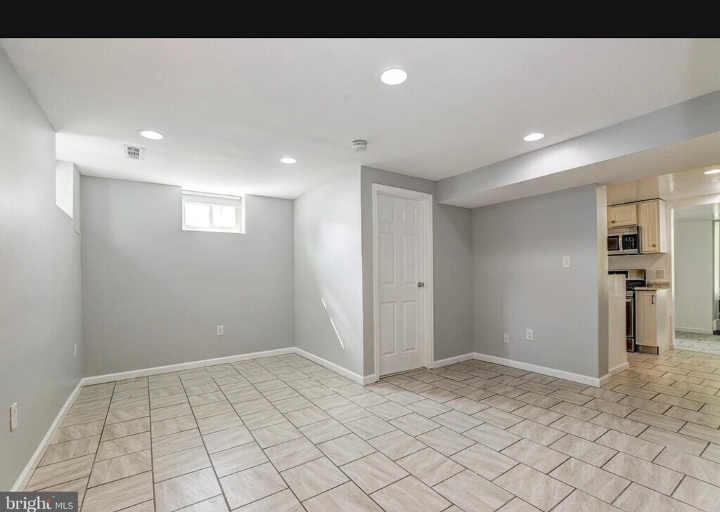 1-bedroom apartment with a living room space that includes a kitchen, washer/dryer and street and driveway parking. Casa en Renta en Baltimore MD 21206 Furley Rd, Baltimore, MD 21206 1 habitaciones 1 baño completo Basement semi Sala y cocina Lavadora y secadora Parqueo Privado Aire Central