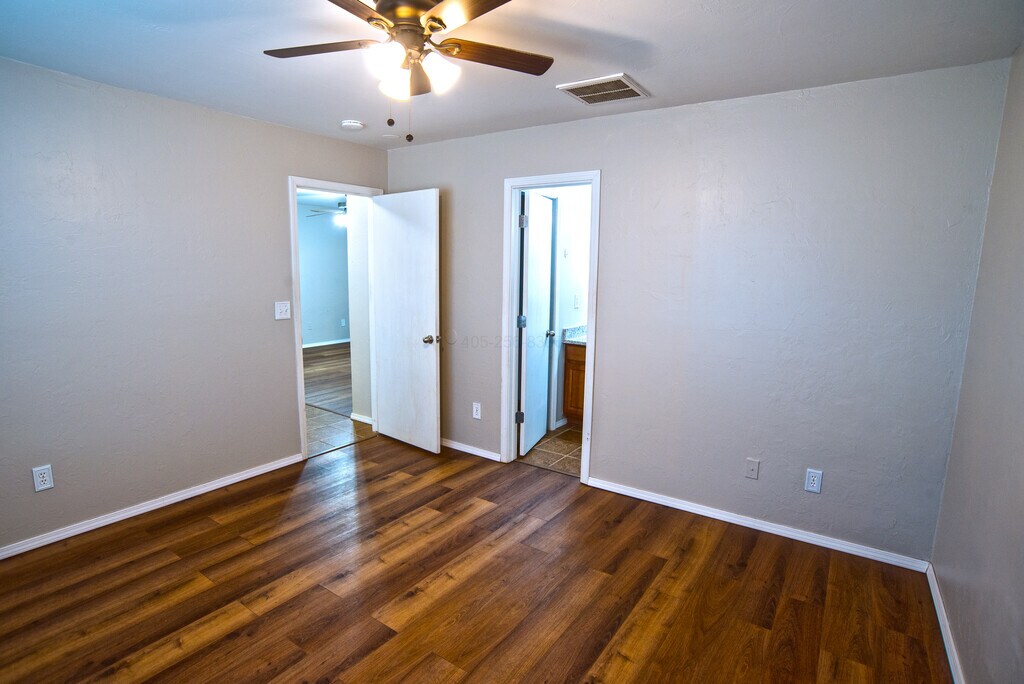 Welcome to your new place! This comfortable 3-bedroom, 2-bath home is conveniently located in SE Oklahoma City, just minutes from Tinker Air Force Base, Bricktown, shopping, and other amenities. This well cared for home has fresh paint, new wood-laminate flooring throughout with ceiling fans in every room. New countertops (2025), new fridge (2023) and new stove (2023). Spacious kitchen with lots of cabinets and counter space, dishwasher and disposal. Laundry hookups in closet off kitchen. Primary suite has its own bathroom and walk-in closet. Two additional bedrooms with the main bathroom between them. Two-car garage with storm shelter. Large living room with ceiling fan. This home is excellent for a family and is being offered at $1500/month with a $1000 deposit requested. Good references and employment please! Initial 6-month lease, then 12-month lease at renewal. Tenant pays all utilities.