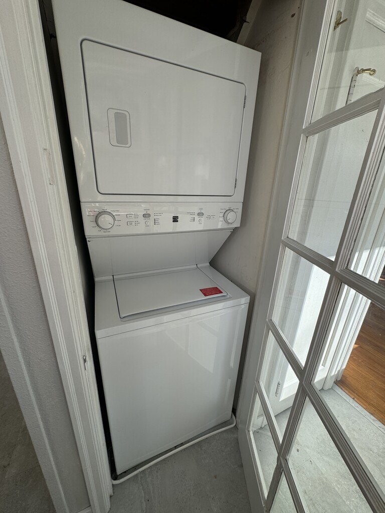 Spacious and light this 2 story upper unit in an old Portland Style home lives like a "real" house. From the well equipped kitchen to the new tile floors and beautiful original wood flooring, this is unusual and special. The main floor living and dining room with a built-in buffet, give way to a large kitchen with a washer and dryer adjacent to the kitchen in a closet with french door. A hallway leads to a main floor bathroom, and a bedroom or office. Carpeted stairs lead upstairs to a loft area and a large bedroom. The walls and trim work were completely repainted last year. Rent includes water and sewer, standard garbage and recycling, and biweekly landscape maintenance. Renter pays for electricity and gas. Unit has a gas heater on the main floor and electric baseboard on the second floor. The unit is located on a double lot which currently allows for additional parking for renters. Owner may develop vacant lot in the future. One dog and/or one cat are allowed with approval. Certain breeds are restricted. Monthly pet rent fee applies. The location offers easy access to Barbur Blvd, Portland Community College, OHSU, Hwy I-5, and the transit center. Woods Park trails are within a short walk of the house.