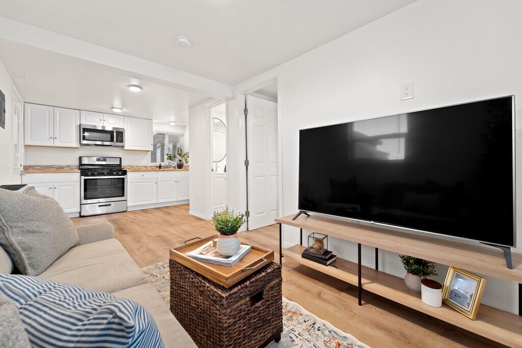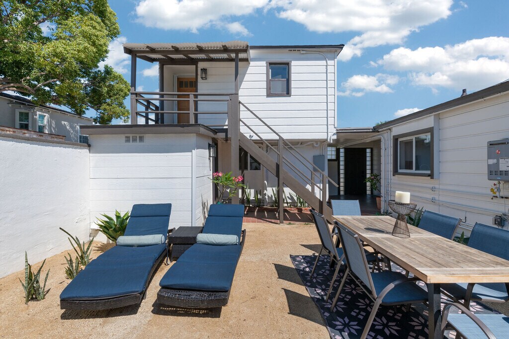 Welcome to this cozy bright living space! Remodeled in 2021, it has a full kitchen with stainless steel appliances, luxury vinyl floors and brand new blinds and refrigerator. Shared laundry with one of the other two units on the property, the washer/dryer are in the backyard shed just 10 steps away from your front door. New flooring with 2 layers of soundproofing was just installed upstairs and you share no walls. The unit is staged in photos, but is rented unfurnished. $2,100/mo + $100/mo utilities. If you have a pet(s) we can discuss. The Talmadge neighborhood’s tight-knit community is one of San Diego’s best kept secrets. Enjoy strolling down wide, tree-lined streets and joining friendly neighbors at Summer Food Truck Nights or the July 4 block party. Just a short walk to local hot spots like Clem’s and Stella Jean’s. Large corner lot, this property exudes character and charm. Minutes to downtown, Balboa Park, Coronado and Little Italy.