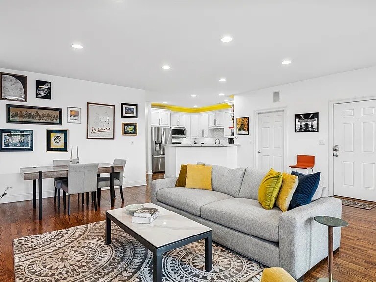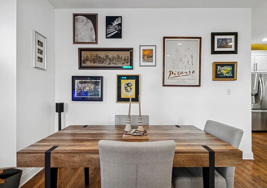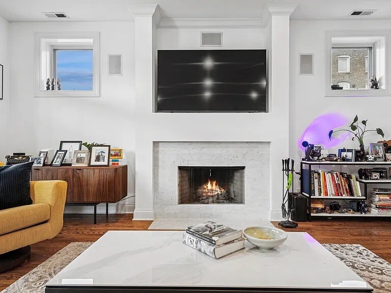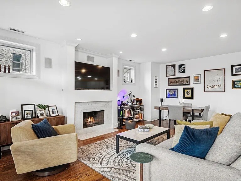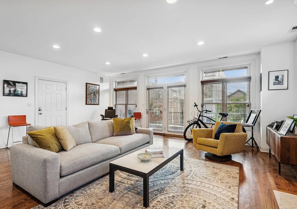Live at the center of it all-just steps from Randolph Street's renowned dining scene, Fulton Market's energy, and the neighborhood favorites of West Town. The home opens to a spacious living and dining room combination, offering plenty of room to spread out, entertain, or create multiple seating areas. A cozy wood-burning fireplace anchors the space, adding warmth and character-perfect for Chicago evenings. The elegantly updated kitchen (renovated in 2017) blends style and function with white cabinetry, quartz countertops, subway tile backsplash, and a farmhouse sink. Designed for both everyday cooking and entertaining, it seamlessly connects to the open layout. The generously sized primary suite is your private retreat, featuring a spa-inspired en-suite bathroom and ample space for a king bed, plus additional furnishings. A large private balcony extends your living space outdoors, ideal for grilling, dining, or relaxing while overlooking a peaceful, tree-lined street. Floor-to-ceiling windows bathe the home in natural light throughout the day. Ample storage and an included garage parking spot complete this move-in-ready home in one of Chicago's most exciting neighborhoods. Includes 1 covered parking spot. Available now with minimum 12 month lease.