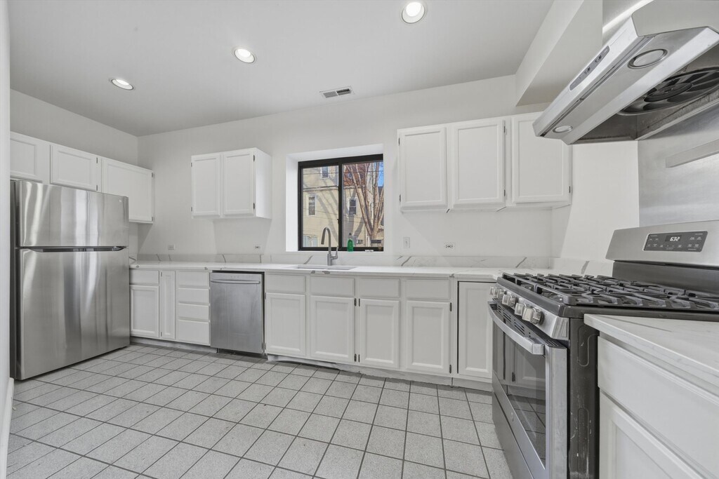 Prime Chicago location near Andersonville, Lincoln Square, and Wrigleyville. Located in one of Ravenswood's most beautiful and quiet tree-lined blocks. This two-story residence features a functional floor plan that balances luxury and comfort The main level is ideal for both entertaining and everyday living, featuring a bright open-concept layout. The spacious kitchen showcases white quartz countertops and stainless-steel appliances, flowing seamlessly into expansive living and dining areas filled with natural light and centered around a beautiful fireplace. Upstairs, you’ll find three massive bedrooms, each offering generous closet space and large windows that flood the rooms with natural light. There are two spacious bathrooms featuring elegant quartz countertops and ample storage. Each bathroom offers both a separate walk-in shower and a relaxing soaking tub, creating a perfect blend of functionality and luxury. In-home washer and dryer for added convenience The outdoor space includes a private roof deck, perfect for relaxing or entertaining, and a fenced side yard that is currently being completed in collaboration with a landscaper to create a beautifully finished outdoor retreat. A one-car garage is also available for an additional monthly fee.