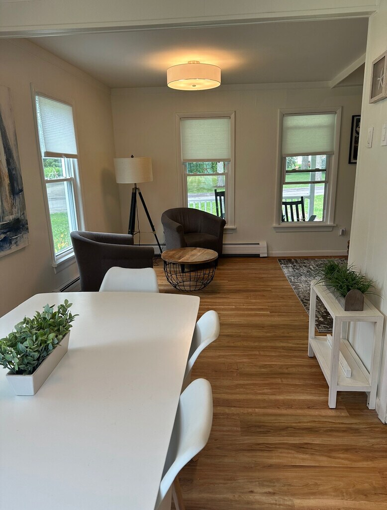 Coming available January 1st! Cozy fully furnished home in quiet lakeside community, within the Town of Hamburg, NY. Perfect for all seasons, and so convenient to everything! Two blocks from Hamburg Beach, and lively waterfront restaurants, a direct 20 minute drive to downtown Buffalo, 5 minutes to the NYS Thruway, 10 minutes to Highmark Stadium (Buffalo Bills), and only a half hour to the ski slopes! This charming home offers a fully equipped kitchen with stainless appliances, a coffee bar with Supreme Keurig, sunny dining area, large master bedroom with a queen bed, large closet, black out shades, and 2 dressers, a second bedroom offers a sofa bed, blackout shades, and a smart TV. The home features a loft that overlooks the living room, featuring 3 large sky lights, 2 twin beds and a work area that overlooks the open concept living room. The living room is furnished with comfortable seating including a Pottery Barn sectional (converts to a queen bed), and a smart TV. The bright modern bathroom even offers Bluetooth sound options! This home offers a majestic front porch with comfy rocking chairs to relax and unwind. Located on a corner lot, it is landscaped with plenty of fruit trees, and two herb gardens in the summer. There is plenty of room to play yard games. The house comes equipped with an in-house washer/dryer. It also has a one-car garage available for your use, as well as driveway parking. Windover Lake guest home is a full-service rental, newly remodeled top-to-bottom. All gas, electric, water, internet, plowing, lawncare, and monthly basic house cleaning is provided (more often and more extensive, for an additional cost). Although it is a monthly lease, additional months can be available, contact the leasing agent. Contact us for a tour.