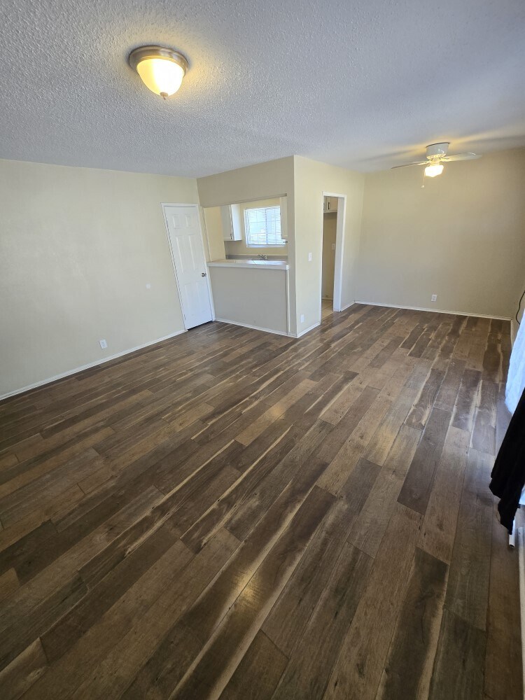 WIFI, trash, and lawn maintenance included in the rent. Nice 4bd/2ba house with huge back yard and covered patio. New carpet in bedrooms. Laminate and tile flooring in all other areas. Plenty of kitchen cabinet storage. Stove included. Washer/dryer hookups. Central heating and AC and a window evaporative cooler in the main living room. Driveway and street parking available.