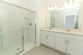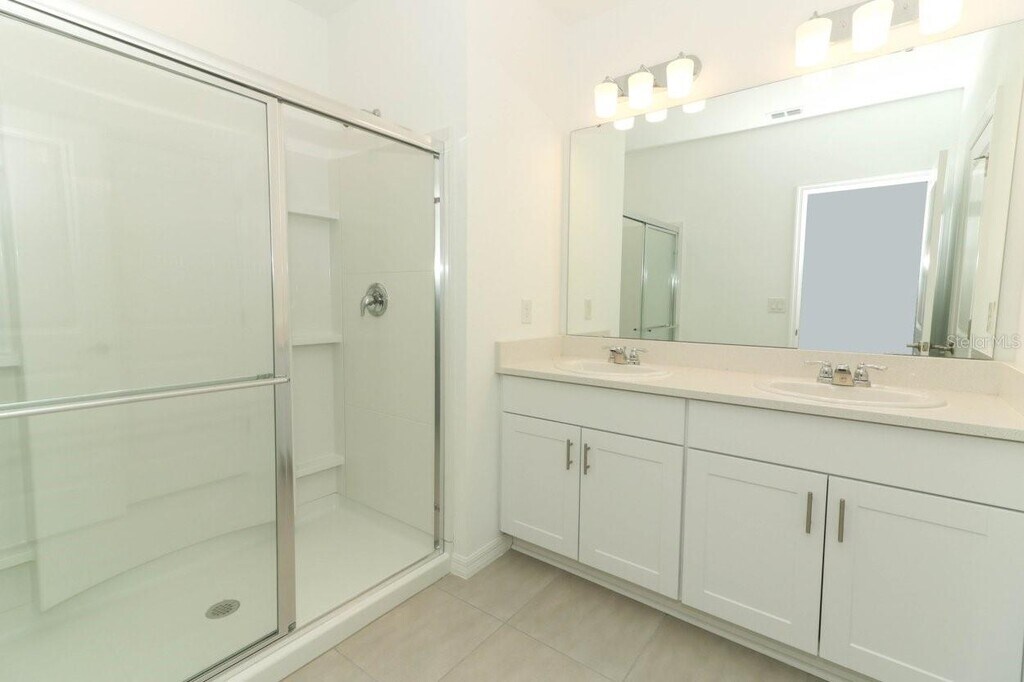Welcome to this beautifully designed 3-bedroom, 2-bath residence offers 1,725 sq. ft. of modern comfort in a peaceful community setting. The open-concept layout seamlessly connects the living, dining, and kitchen areas, making it ideal for everyday living and entertaining. The kitchen shines with quartz countertops, stylish cabinetry, and a large center island, while oversized windows flood the home with natural light. The spacious primary suite is a true retreat, featuring dual sinks, a spa-like shower, and a walk-in closet. Step outside to a covered patio and private backyard, perfect for relaxing, grilling, or enjoying Florida’s sunshine. Enjoy the best of location and lifestyle, this home offers quick access to I-4, shopping, dining, and major employers, with Disney, Universal, and Orlando attractions just a short drive away. Community amenities include a resort-style pool and recreational areas, adding value and convenience to your everyday life. Comfort, style, and location come together here, schedule your showing today before it’s gone!