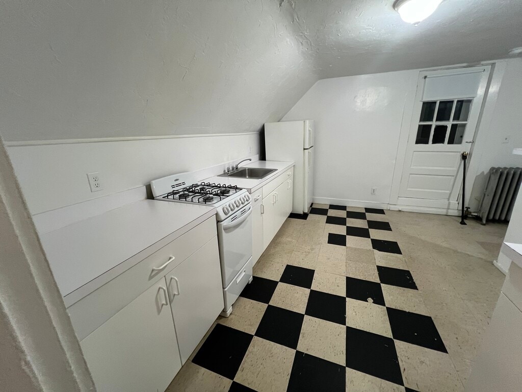 Large spacious studio on the top floor with heat/hot water included. Small fire escape/porch off of the kitchen. Full kitchen with extra dining space, separate from the large living space. Video tour available.
