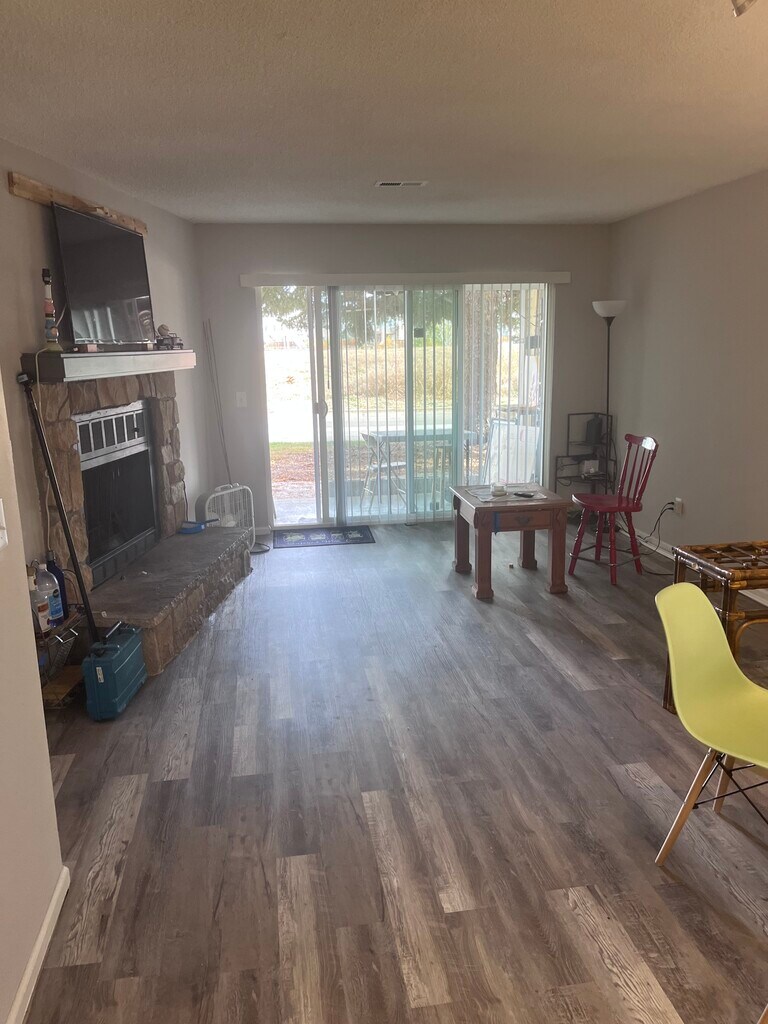 Easy access first floor unit close the airport in Aurora take center brand new carpet new floors in kitchen and bathroom separate vanity sink .Open space in front of patio. Big pine tree be great to place a table and barbecue in the summer close to public transport on Alameda and Buckley,Aurora mall and Aurora transit Center