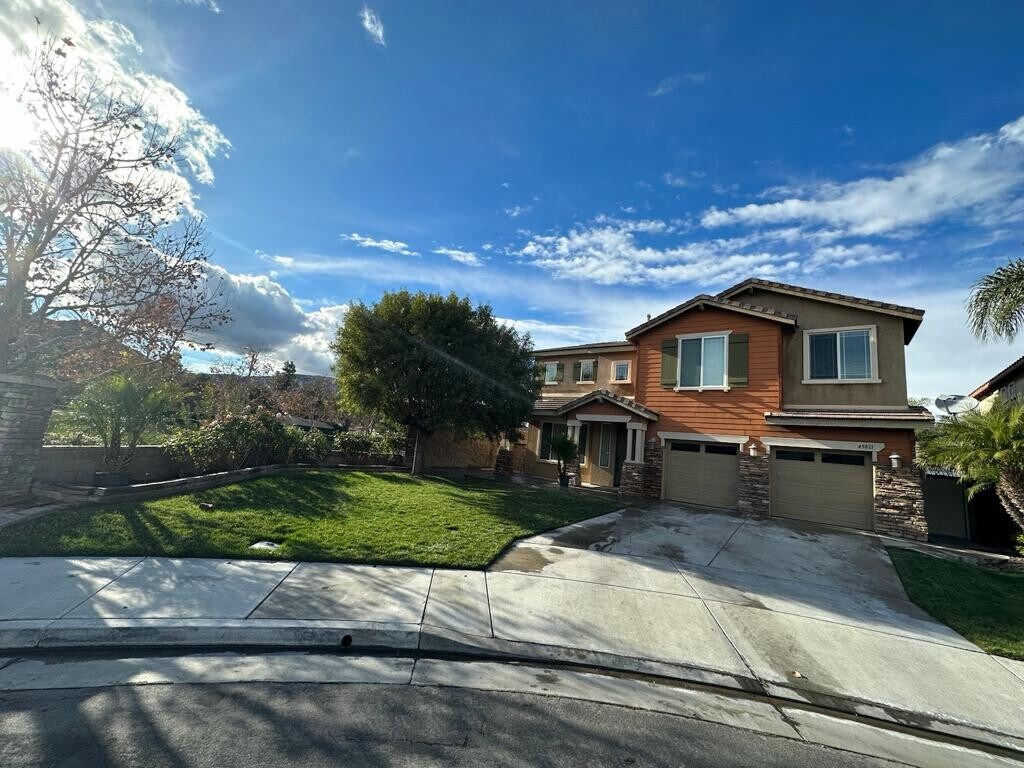 This beautiful executive home in the highly desirable Wolf Creek Community of Temecula is a great opportunity for you to live in SOUTH TEMECULA and call this place HOME! It's a 4-bedroom plus Loft with 3-full bath and 3-car tandem garage nestled in a Cul-De-Sac w/Direct access to Walking Trails, Community Parks, and Schools. Covered porch with picnic style area at front yard. Upon entry you will appreciate the natural light from the high ceiling windows and arch entries. Downstairs offers a Bedroom and FULL bath. The spacious kitchen with center island opens up to the family living area. The master suite on the second floor offers a tub and shower to soak and relax in. His and hers walk-in closets. Ceiling fans in all bedrooms and throughout the home. Keyless entry, preinstalled security system, and built-in intercom in all rooms. The backyard has alumawood covered patio with ceiling fans and low maintenance hardscape designed stamped concrete surrounded by fruit trees. Enjoy amenities in this community with swimming pools and spa, clubhouse, and gym. Quick access to the freeway, near the Distinguished Temecula Schools, Shopping Centers, Pechanga Casino w/view of the 4th of July Fireworks, Winery and so much more. Fully remodeled home with new vinyl flooring, remodeled kitchen and all brand new top of the line appliances: Profile oven and microwave, Bespoke fridge, Bosch dishwasher, and LG washer and dryer.