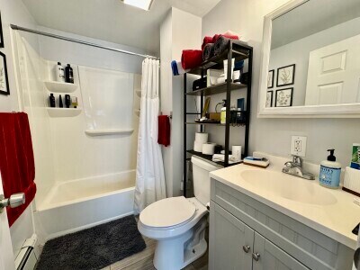 Available 9/1/25. Jamaica Plain top floor 2 bed plus an office with laundry in unit. Renovated kitchen with new white cabinets, quartz counters, and stainless steel appliances. New flooring in hallway and kitchen. Hardwood in bedrooms and living room. Cats ok. Move in costs are 1st, security, broker fee.