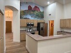 Beautifully Renovated 3-Bedroom Home in the Heart of Gilbert This spacious, newly refreshed 2,105 sq ft single-level home offers 3 bedrooms and 2 full bathrooms in a highly desirable Gilbert neighborhood, directly across from a community park. Recent updates include: Fresh interior paint Brand-new modern wood-look luxury vinyl plank flooring Renovations are currently underway, with the kitchen being upgraded to achieve a more modern, contemporary look. The thoughtfully designed split floor plan features vaulted ceilings, an open and airy feel, and two separate living areas, providing flexible space for everyday living or entertaining. The home also includes a 3-car garage with built-in cabinetry, offering excellent storage and functionality. Adding a unique and welcoming touch, two hand-painted wall artworks inspired by Sedona bring warmth, natural charm, and a serene ambiance to the home. Step outside to a landscaped backyard with grass, mature trees, and a covered patio, creating a peaceful and private outdoor retreat. A neighborhood park is conveniently located directly in front of the home. Flexible lease terms available — short-term and long-term leases from 5 to 18 months are welcome. With its prime location, spacious layout, and modern upgrades, this home offers comfortable living just one mile from downtown Gilbert.