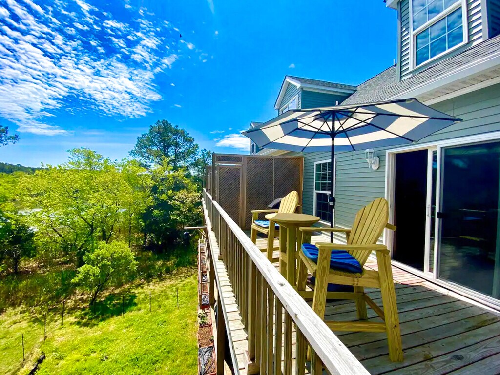 One of a kind, furnished waterfront 1bdrm 1bath apartment with panoramic private deck views of the Chesapeake Bay and wetlands. Note: We charge a $200/month flat fee for ALL utilities, which includes hi speed wifi, electric, water, trash, and smart TV with access to yootoob TV(50+ live channels including local). No need to pay any bills here. Just write one check each month. This is on the 2nd floor of our private residence, but it feels like its own private home. There is a shared foyer to enter the property, but the interior windows and deck space have no sight lines to the other floors. There is a ton of natural light(the sun rises over the water each morning and can be enjoyed on the deck), dedicated off street parking, high speed internet, washer/dryer(in the foyer), ceiling fans, full kitchen, 55 inch 4K SmartTV, its own heating/AC, and your own private 25 foot high, 150 square foot deck with incredible views of the bay and wetlands. There is an abundance of wildlife here: eagles, hawks, cranes, egrets, osprey, robins, doves, squirrels, ducks and a deer family that comes right in the yard. This is a bird watcher's paradise as we are on the edge of protected wetlands. We are right on the Back River and you can put one of our kayaks in right the backyard, or go relax on the outdoor swinging chair at the river’s edge. We are tucked away in a small and quiet community. We are dog friendly. There are dogs in the house and other pups on our street that our friendly neighbors walk everyday. Come enjoy the peace and natural beauty of this place. This unit is furnished and has a fully stocked kitchen, but could be unfurnished for a long term tenant. For a couple the rent will increase $100. This is on the 2nd floor but there are two flights of stairs to reach it as the house is elevated and one set of stairs is outside. Contact me and we can set up a showing. Thanks, Tim