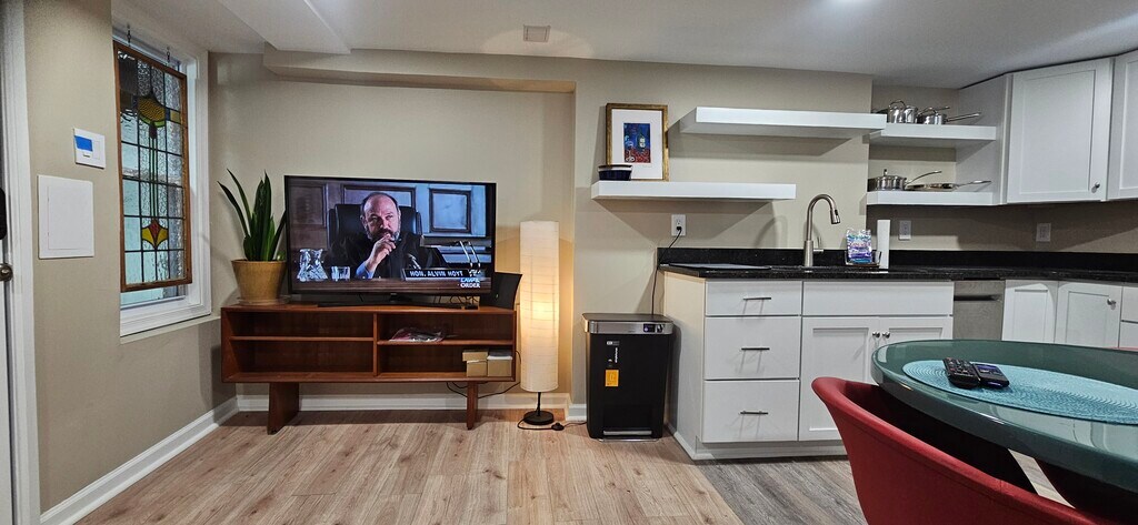 Clean, private, furnished 1BR/1BA basement studio apartment in owner-occupied townhouse in the Radnor-Winston neighborhood of Baltimore city. The unit offers a separate, walkout entrance, bedroom w/closet, full bath, table-space kitchen, and in-unit washer/dryer. Bedroom is furnished, with a queen-size bed, dresser, desk and chair; Kitchen consists of a dinette w/chairs, refrigerator, dishwasher, microwave oven, two-burner portable cooktop, and plenty of cabinet storage. WiFi/Internet access is available. Adjacent to York Road and E. Cold Spring Lane, and close to N. Charles and St. Paul streets, on major transportation routes. Convenient to Loyola, Notre Dame of Maryland, Morgan State, and Johns Hopkins universities. Minutes from MedStar Union Memorial and Good Shepherd, and Sinai hospitals. shopping and dining. It is two blocks from picturesque Sherwood Gardens and nearby Baltimore Museum of Art. Rent is $1500/month and $150 for utilities. The lease requires first and last months rent, and $500 security deposit.