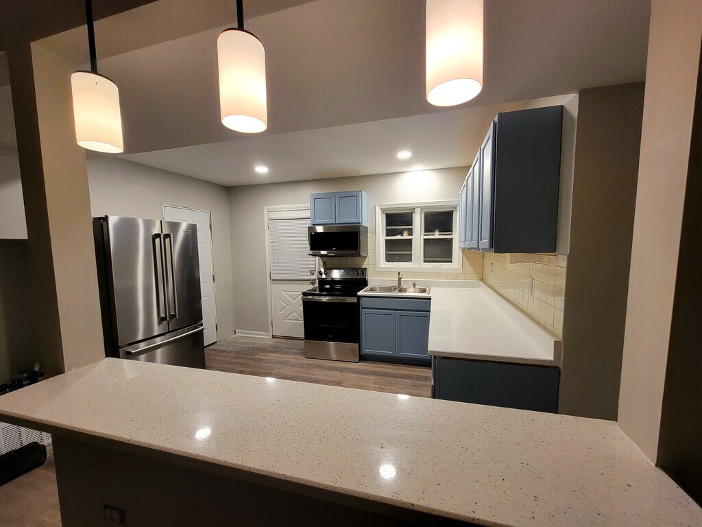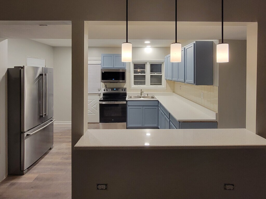 $1300 – Modern 2 Bed / 1 Bath Duplex Unit with Garage & Yard in Braidwood, IL Welcome to this thoughtfully updated 650 sq ft unit in a quiet, well-kept duplex—perfect for those seeking comfort, style, and convenience. • Interior Features 2 bedrooms, 1 full bath One bedroom with closet Second bedroom ideal for office, guest room, or cozy sleeping space Modern kitchen with brand-new appliances and granite countertops Open-concept pass-through with granite bar and dimmable pendant lighting LED recessed lighting throughout kitchen, living room, and hallway—all on 3-way dimmer switches Central heating for year-round comfort • Garage & Laundry Attached 450 sq ft garage with front-load washer & dryer included Plenty of room for storage, parking, or workspace. Brand new water heater. • Outdoor Amenities Shared front deck Large yard with ample on-property parking Located in a peaceful town with great schools and growing local development Close to shops, services, and commuter routes • Utilities Tenant covers utilities including: Water/Sewer/Garbage, Electricity, Gas, & Internet