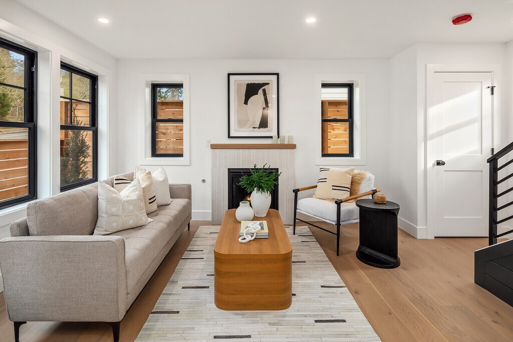Stunning fully furnished 2 Bedroom + office with 1.5 Bathrooms. 1,069 sq ft New Construction home in Upscale NE Seattle. Unfurnished is an option. Modern Tasteful Decor Energy Efficient Heating & Cooling Washer & Dryer Onsite