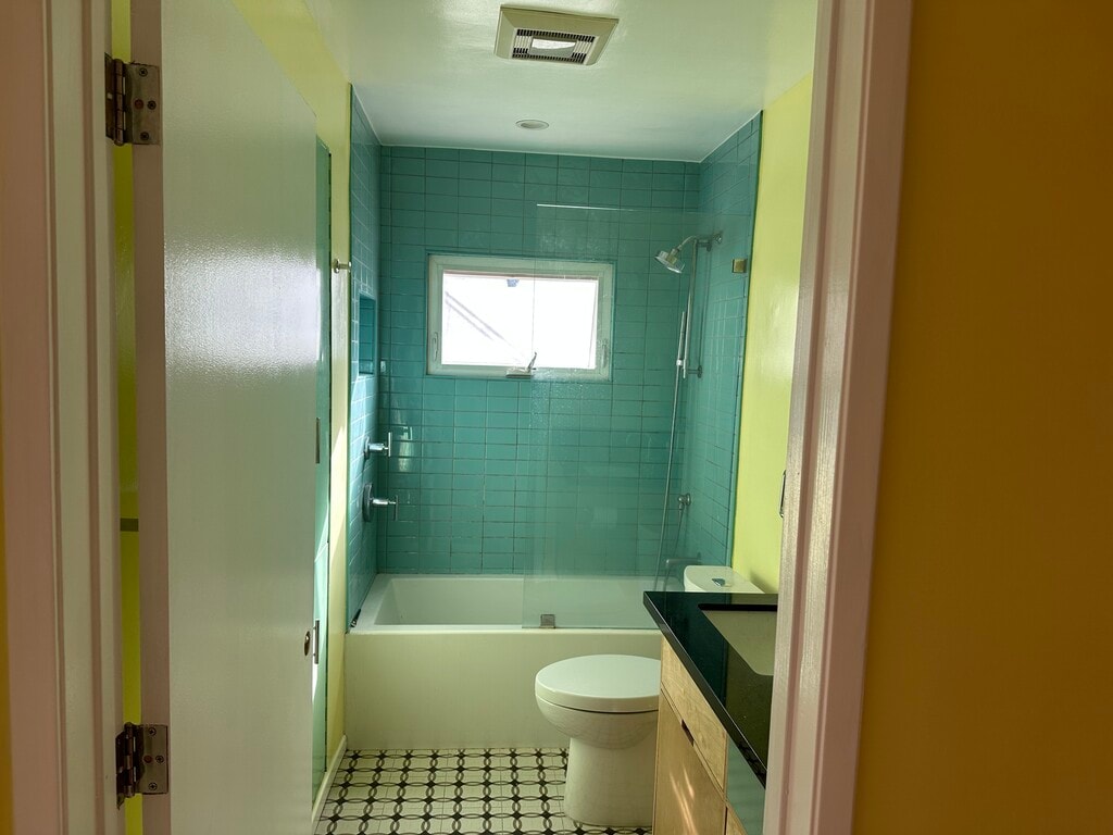 Beautiful 2 Bedroom 1 Bath in Eagle Rock Duplex This Mid-Century Modern unit is located off a peaceful street in West Eagle Rock, has an open floor plan and hardwood throughout. The living room features an exposed brick wall with vintage shelving/desk/cabinet unit. The kitchen and bath have been remodeled, and all cabinets are custom made for the home, many with pull outs. Unit includes modern appliances: refrigerator with ice maker and filtered water dispenser; 5 burner gas stove with removable griddle; smart oven features Air Fryer and Convection Oven functions among standard settings; and Bosch dishwasher. The laundry room is under the house featuring new machines with large capacity tubs and a dumb waiter to move clothes without carrying them up and down stairs. There are beautiful views from all windows of the home and the neighborhood is very peaceful. There is a backyard and patio with BBQ, outdoor Clawfoot tub with shower. Small pets are okay and all utilities are included.