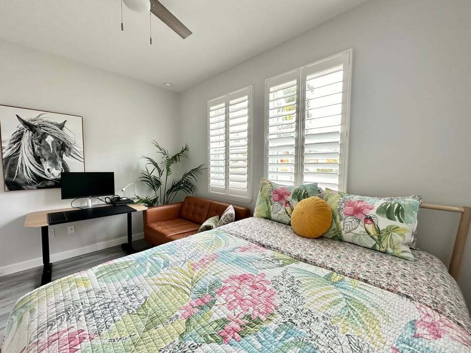 I’m renting out a comfortable, modern bedroom in my home. The room gets plenty of natural light, has a ceiling fan, a bed, a desk, and a large closet with built-in shelving. It comes fully furnished and is ready to move in. Shared bathroom is clean, fresh-looking, and offers plenty of counter space. This is a quiet, well-maintained home. Looking for one respectful person. No smoking. No guests!!! You will also need to pass a background check, income verification and rental insurance. First and last month’s deposit required! Rent: $1000 per month Deposit: $1000 Utilities and internet included. Laundry is available. We are a married couple. Both are full-time professionals. We also have two small poodle dogs.