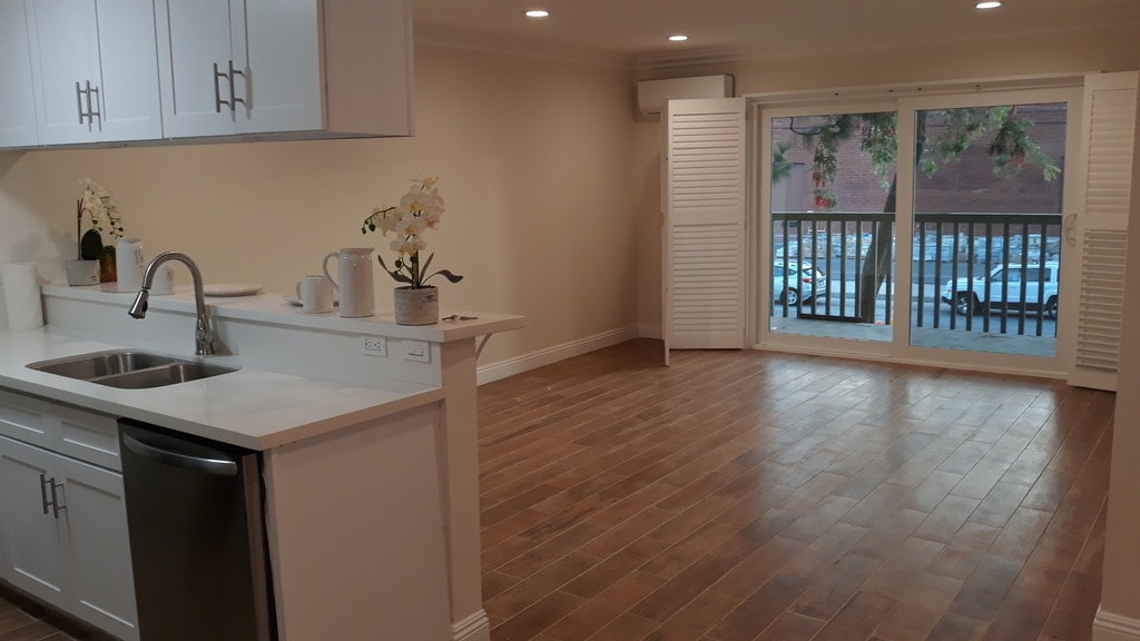 Welcome home to this beautifully remodeled one bedroom one bath condominium just minutes from LAX and Beaches. Bosch air conditioning/heating units in bedroom and living room. Recessed lighting with dimmer switches, ceiling fan in dining area. Frigidaire appliances: stove, microwave, refrigerator, and dishwasher; with wood grain ceramic tile flooring, Shaker style cabinetry in a generous bathroom with dual sink, quartz counter top, Kohler tub, subway tiled walls and clear sliding shower doors. Extravagant ceiling molding throughout, double paned windows, sliding glass doors, plantation shutters, fresh light fixtures, and large balcony overlooking Inglewood Ave. Freshly landscaped common area, new walkways, plus an updated pool make this a great place inside and out. One parking space and private storage both located just steps from your unit . On site laundry, Recreation room, and bicycle room in one of the best maintained complexes in the South Bay. Welcome home. 700 + credit score