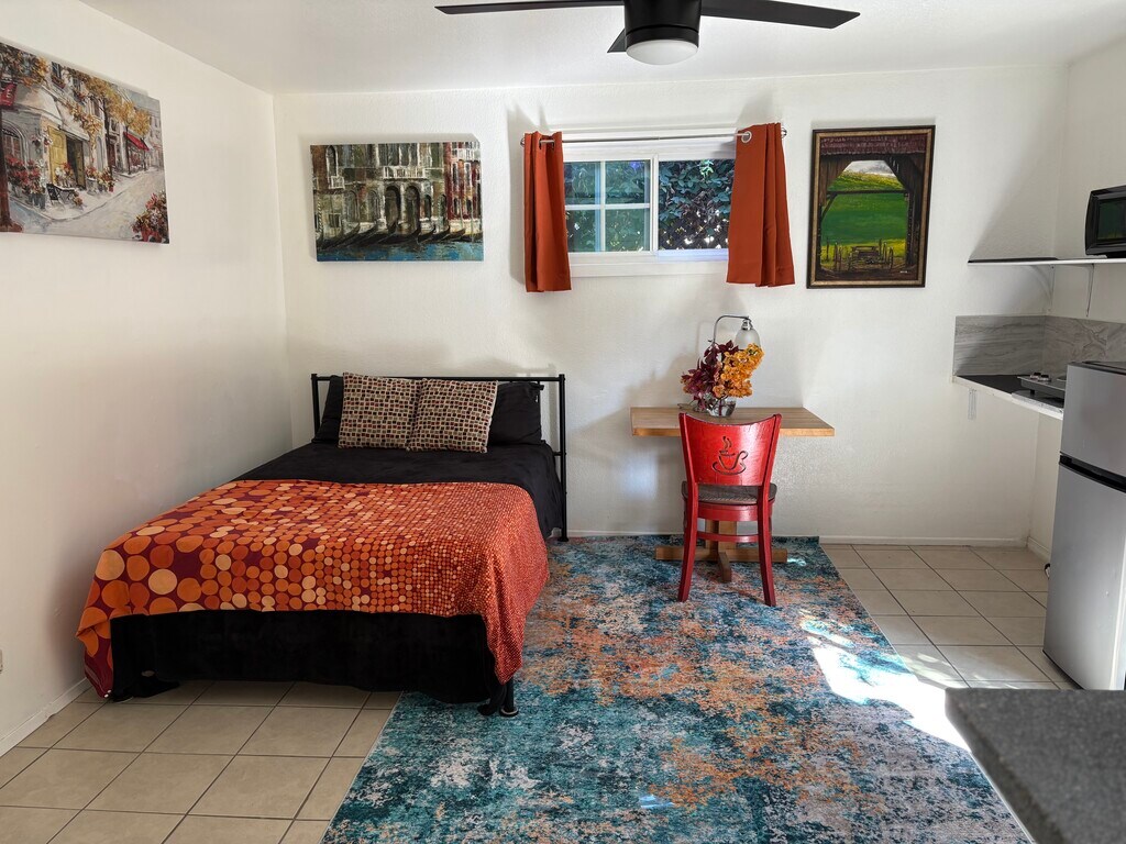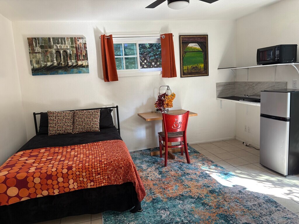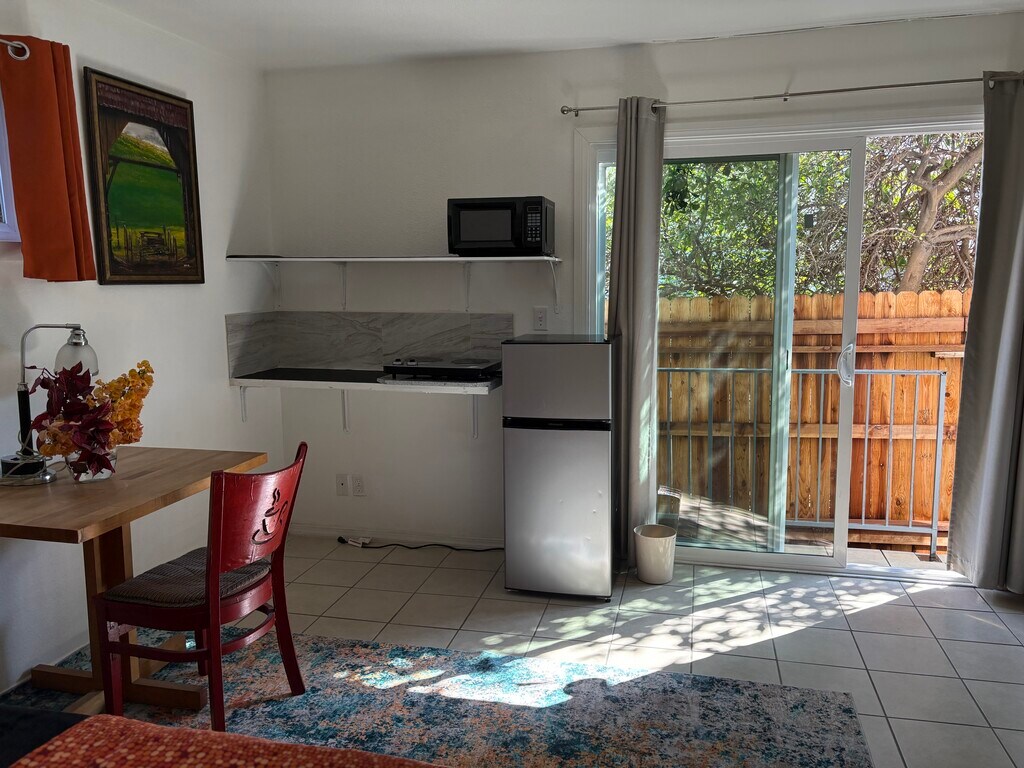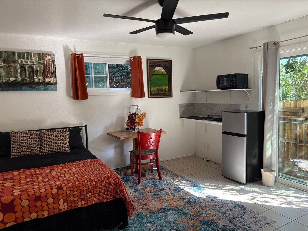 Beautiful large studio very clean lots of sunlight surrounded by a beautiful garden and greenery private patio. Furnished walking distance to Redondo Beach, Galleria, movie theater, supermarkets, restaurants, less than 4 miles to the following cities of Redondo Beach, Torrance, Hawthorne, El Segundo, Manhattan Beach, Hermosa Beach. 7 miles to LAX 10 minute drive to Sofi Stadium on the forum deal for the single professional six minutes walk to the walking trail 1.5 miles to the Redondo Beach performing center where there is a running track.