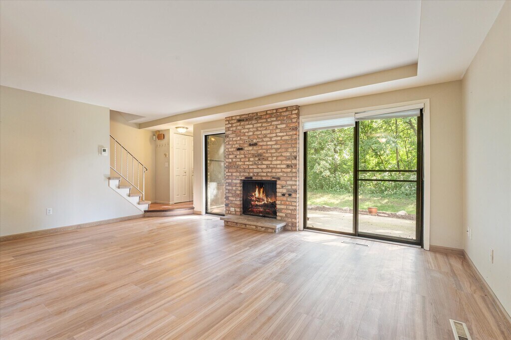 3 BR two-story townhouse in safe, quiet, friendly area near nature. End unit, 1 full bath, two half baths. Includes a walkout patio and 2-car garage. Enjoy an easy walk or bike to Cedar Lake, and just a 2 minute drive to West End shopping center, 8 minute drive to downtown. Last picture shows bike trail. Unfurnished.