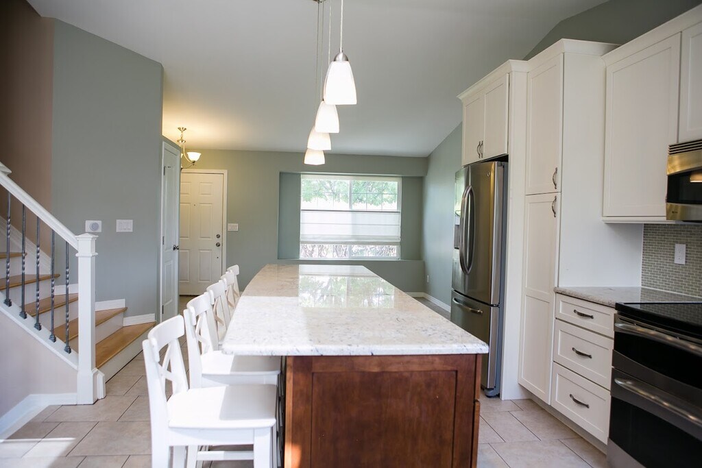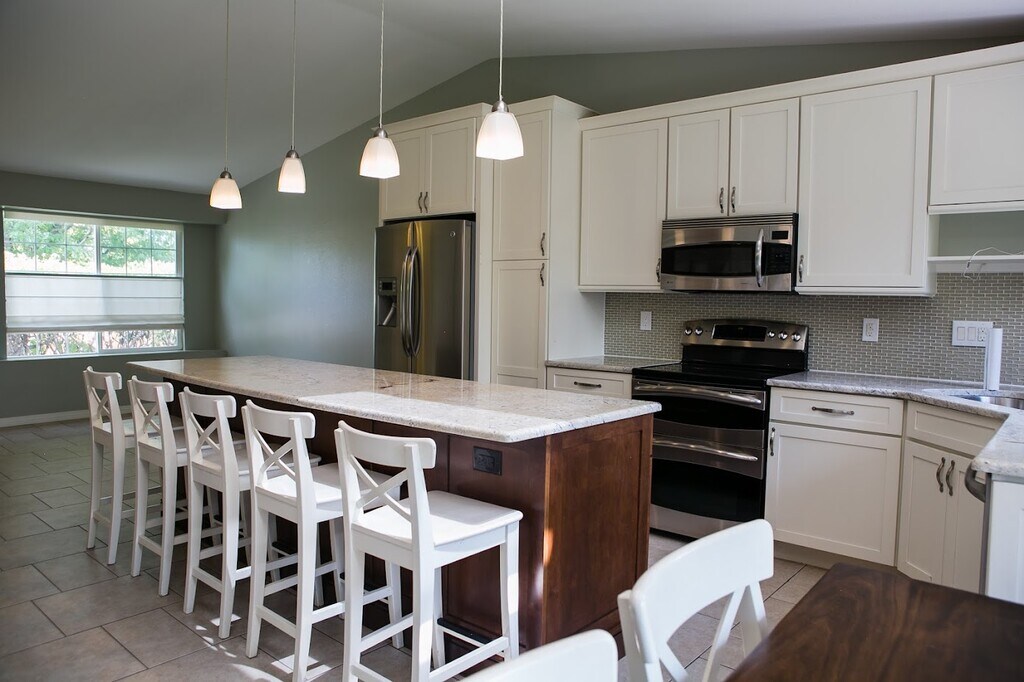 Rent includes SOLAR energy! This home is BEAUTIFUl! 100% renovated & ready to rent this summer! This home features a vaulted ceiling, new ceiling finishes (no more popcorn), a new kitchen with a 9-foot island, granite counters, stainless steel appliances, hardwood flooring, and tile, all closets contain California Closets organization, vessel sinks in bathrooms, new toilets, a stamped concrete patio in back with a retractable awning, professional landscaping, plenty of shade trees, a fireplace, window treatments, a two-stall attached garage, a partially finished basement, large crawl space with turf, laundry (washer AND dryer), a custom size dining table with chairs and eating nook, barstools for the island, NEST thermostat, RING doorbell, and a newly installed whole house fan for more efficient energy use and cooling, and MORE! Enjoy nicer amenities while you rent! Relax and settle in! Landlords are local, no big companies. No pets, no smoking. Available approximately 7/1/2026. The home has been painted, has a new roof, and has new basement floors (different from the photos). A screening form is required as well as background checks and credit checks. Will only show home to approved inquiries after initial screening.
