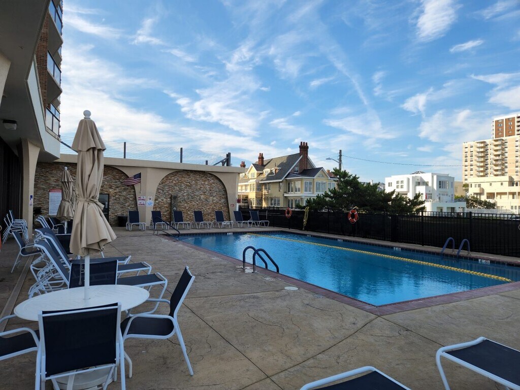 Spectacular direct Ocean views right from your balcony! 24/7 service building with stunning lobby and plenty of amenities such as a heated pool, brand new fitness center, cafe on site, library, community room, chair service to the beach, storage for bikes, and valet parking. Beautiful studio with large balcony with panoramic views of the Ocean and Atlantic City Boardwalk features parquet hardwood floors, tile kitchen with breakfast bar, and new appliances. brand new bathroom with tile shower, large closet for storage and clothing. Enjoy beautiful sunsets and fireworks from your balcony, All utilities are included except cable and valet parking. Storage for bikes included. Get the best of both worlds as you can choose Margate or Atlantic City nightlife. Available for August 1, 2025