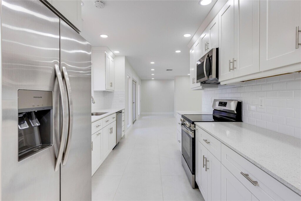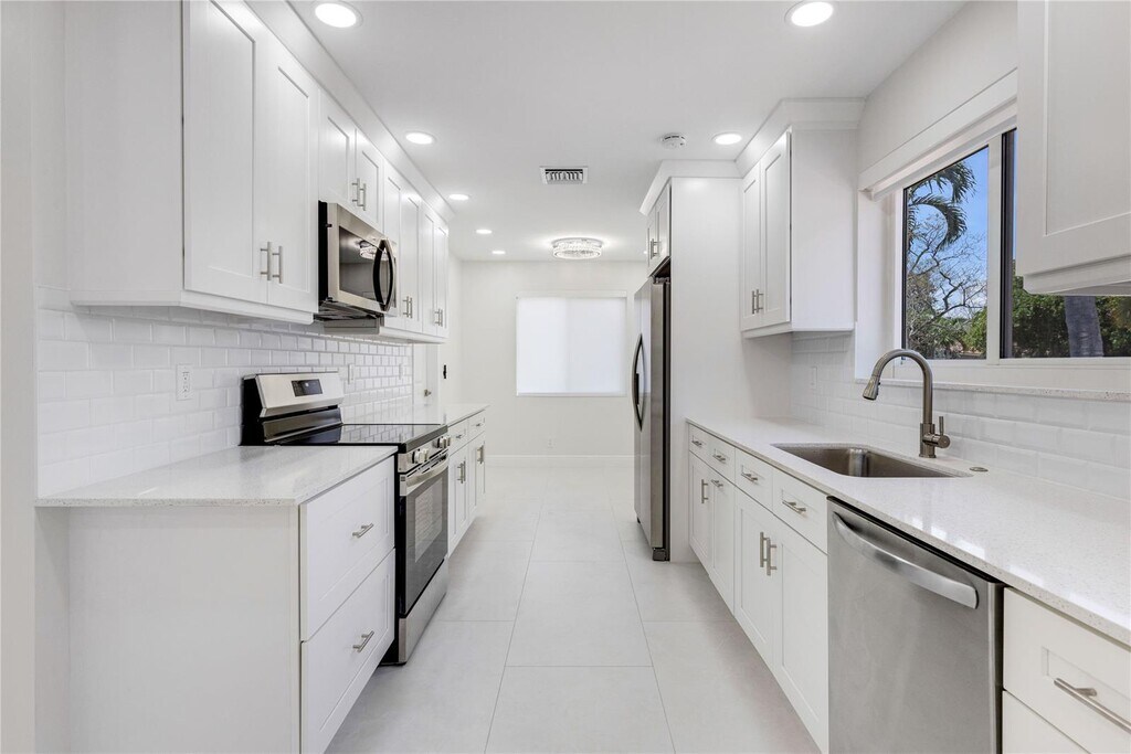 This fully renovated 3-bedroom/2-bath open concept home with garage in Hollywood Hills is move-in ready! The house features a new roof, new air conditioner, new kitchen, two new bathrooms, and is freshly painted inside & out. Hurricane impact resistant windows have new window treatments with a large sliding door leading to a screened patio. The backyard is large and completely fenced in with a driveway from the alley and a circular drive in the front. Separate laundry room with new washer & dryer is accessible from the kitchen. Quiet residential location between Hollywood Beach and the Hard Rock Hotel & Casino and only minutes from the airport, I-95, Memorial Regional Hospital and nearby shopping.