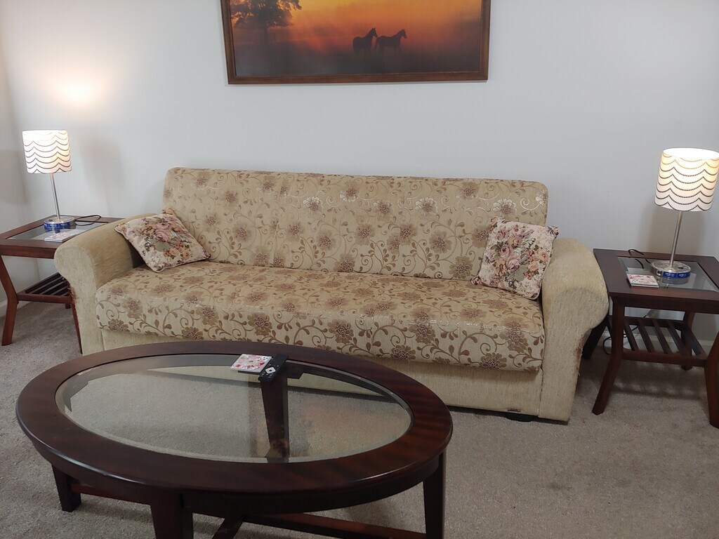700 sq ft furnished basement apartment, Private entrance, no shared living space, full kitchen, full bath with tub and separate shower, car dependent area near Conyers, Covington, Loganville, Monroe, month to month to begin with possibility of converting to long term lease.