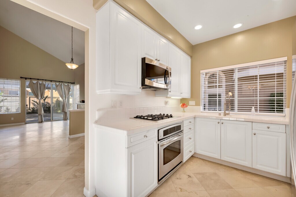 Beautiful End-Unit Townhome in Oak Park – Capri II Plan 3 Welcome to this stunning three-bedroom, three-bathroom Capri II townhome located in the heart of desirable Oak Park. Each spacious bedroom features its own private full bathroom, offering comfort and privacy for every member of the household. This end-unit home boasts one of the largest yard spaces in the community, complete with a covered patio and convenient exterior access to rear yard—perfect for entertaining or relaxing outdoors. Inside, enjoy elegant travertine marble floors downstairs and brand-new carpet upstairs. The open layout is complemented by recessed lighting, stylish window treatments, and abundant natural light throughout. The kitchen comes equipped with a refrigerator, and both washer and dryer are included for your convenience. A two-car attached garage provides direct access and additional storage space. The Capri II community offers resort-style amenities, including a pool, spa, tennis courts, and a clubhouse available for private use with a deposit. Beautiful greenbelts separate the units, adding a sense of openness and privacy. Located close to award-winning Oak Park schools, scenic parks, recreation areas, and hiking trails, this home combines comfort, convenience, and California living at its best.