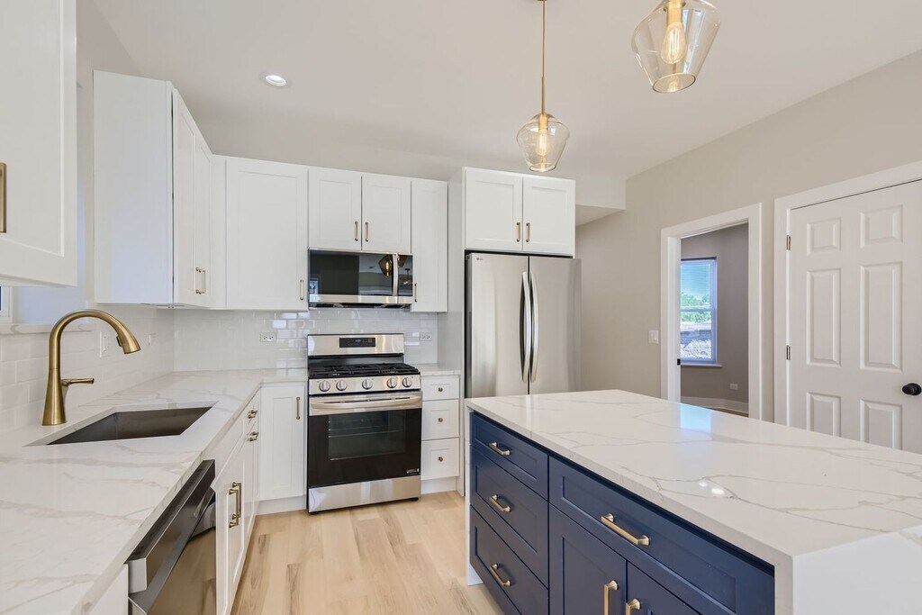 Welcome home to this bright and spacious 3 bedroom, 2 bath condo in the heart of Lincoln Square. Designed with both comfort and style in mind, the open-concept living, dining, and kitchen area is filled with natural light-perfect for everyday living or entertaining. Modern finishes throughout include hardwood floors, quartz countertops, and LG stainless steel appliances, while the large kitchen island and cozy electric fireplace add both function and charm. The primary bedroom features a full ensuite bath, with custom closets and ceiling fans in every bedroom. Additional highlights include in-unit washer and dryer, central air and heat, energy-efficient windows with sound-reducing insulation, beautifully finished bathrooms with glass shower and tub doors, and a flex den or mudroom space. Located just steps from Lincoln Square's shops, restaurants, parks, and the CTA Brown Line-with the North Branch River and nearby green spaces close by-this home offers the perfect blend of neighborhood charm and city convenience. Garage parking available for $200/month. Dogs are welcome. Tenant pays gas and electric; water is included. Non-smoking unit. Renter's insurance required. Available now. Showings available now, in person or virtual.-Presented by Fulton Grace Realty