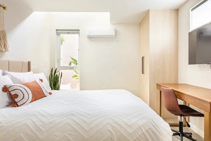Fully furnished and newly renovated modern boho chic unit in a duplex w/patio. Keep it simple at this peaceful and centrally-located place at the heart of Highland Park. Nestled at the foot of Mt Washington and surrounded by lush native plants. Walking distance to cafe, breakfast and Highland Park nightlife. The space Each room is equipped with a 50in mounted Roku TV, Fast internet and a desk. The beds are quality queen mattresses to provide a comfortable sleep. Nescafé for a shot of espresso, latte or hot coffee. A fully stocked kitchen with all the spices and amenities for any level of cook. Split duct air conditioning and heating system to provide individual temperature levels for each room. A luxurious standing shower and spacious bathroom with plenty of storage. A quiet and peaceful botanical garden and patio for a morning coffee or evening glass of wine.