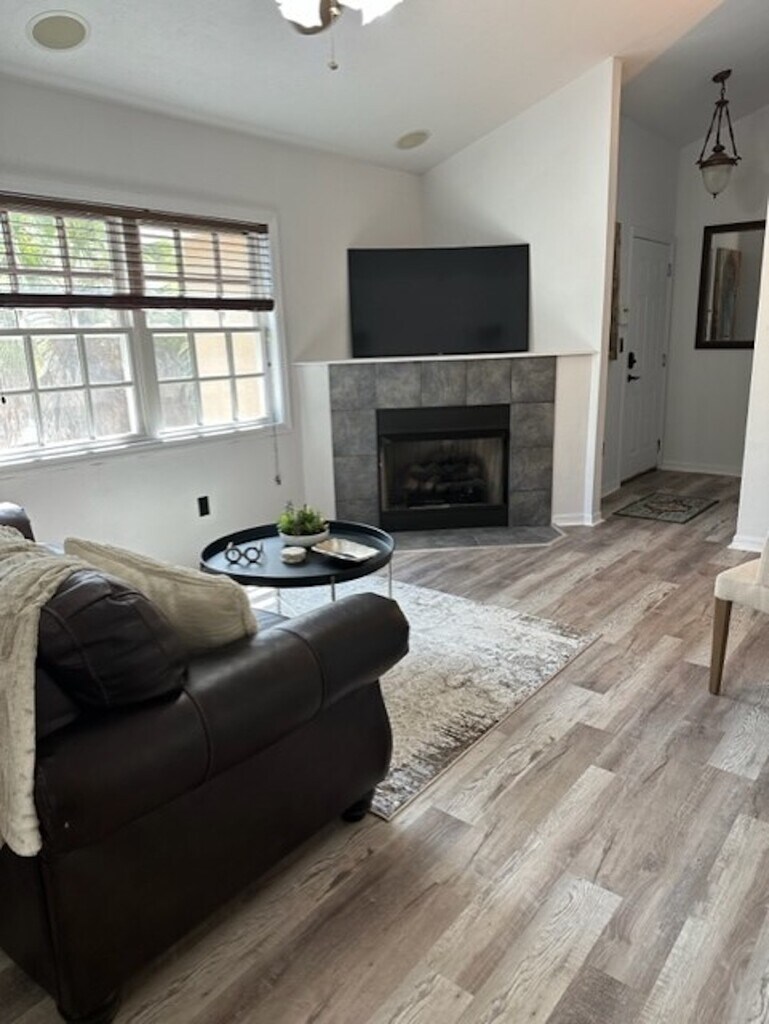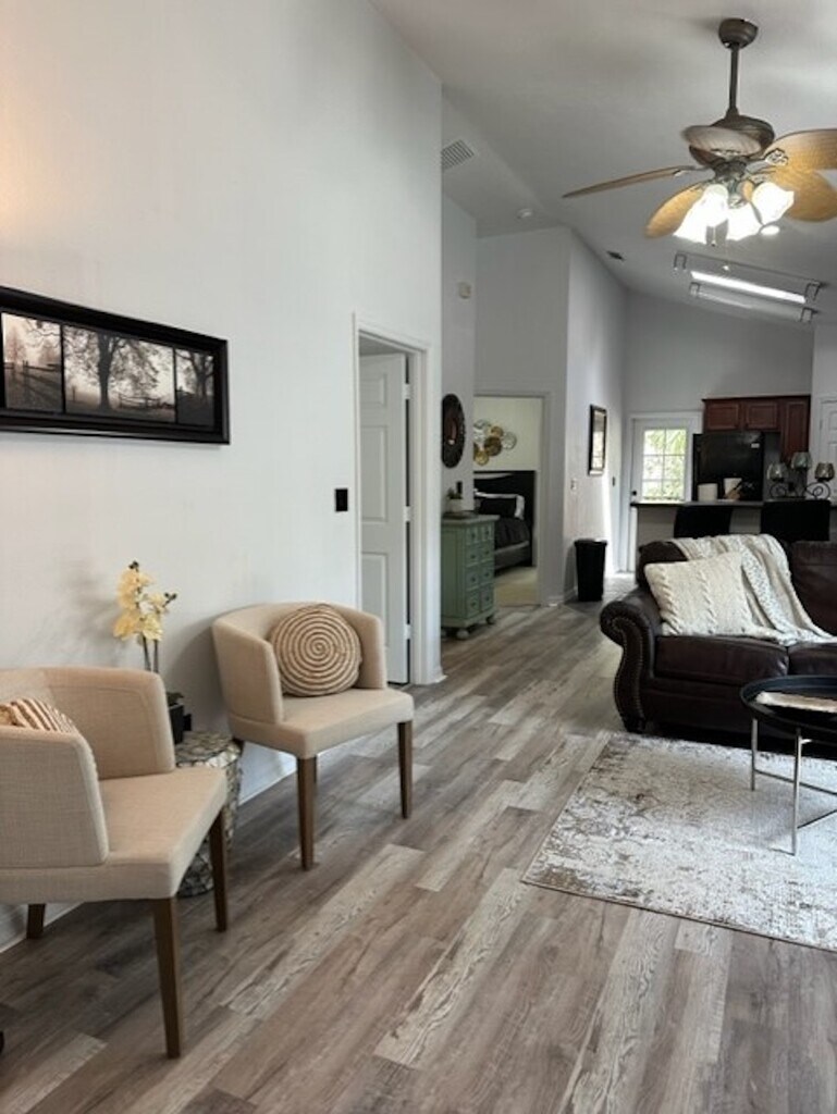 Vaulted Ceiling, wood style flooring in main areas and tile in Kitchen/bath. Fully furnished option $150 more about published rent rate. UF Bus Line, A+ School Wiles Elementary, Kanapaha Middle, and Buchholz High in heart of Haile Village walk to shops, restaurants, people and dog parks, playgrounds, community events and Publix. 8 Miles to UF and miles from I-75 and Celebration point. Wood style floors, washer/dryer in unit and small PETS welcome.
