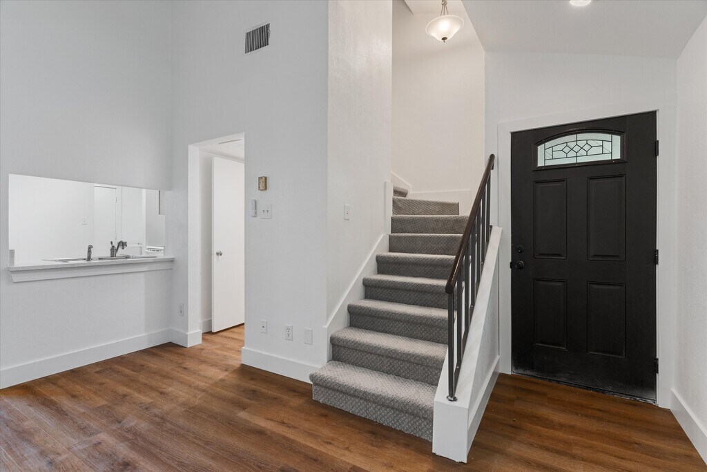 Updated and refreshed 2 bdrm and 2.5 bath townhome in peaceful community with lots of trees. New flooring and fresh paint throughout. Gas start wood-burning fireplace, light and bright inside. Attached one car garage and newly fenced back patio. Small pets considered, pet deposit $500.