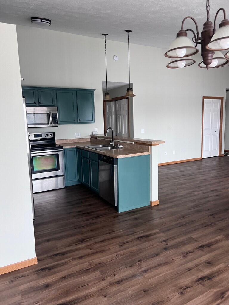 This lofted 2 bedroom condo is located on west side of Sioux Falls. It has new flooring, paint and light fixtures. Open concept and washer and dryer included. 1 year lease required. Internet, Water, sewer, garbage, lawn care, snow removal covered by HOA. Tenant pays for electricity, gas & HOA ($250) Pets allowed limit 2 with $500 non refundable pet fee per pet. No Monthly pet fees. No smoking. Off street parking available, free. Garage is also available for $50 per month. Application required with income to cover 2.5 times the rent.