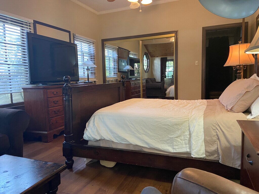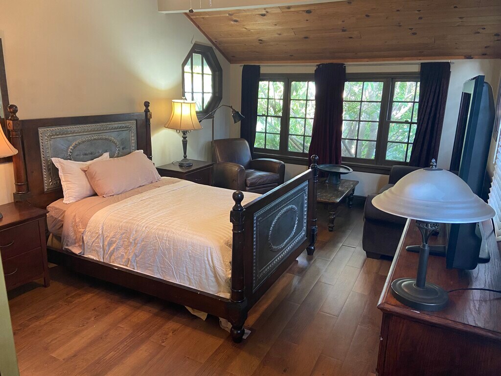The rooms are spacious, the neighborhood is great with lots of unrestricted parking. You won't have to worry about moving your car for street sweeping. The house is centrally located with easy freeway access to the 134, 101, and 170. Way less congested over here than other parts of LA. The house is close to Warner Brothers, Universal Studios, ABC, CBS Radford, and lots of other studios, making it an ideal place to live if you work in the Entertainment Industry. It's a quiet neighborhood...the kind where everyone is always walking their dogs. The house has solar panels, so the electric bill is way cheaper with them. The house has 2 water heaters, one for the front and one for the back, so there's always plenty of hot water. The house also has 2 separate central AC units (front and back), and the rooms also have an AC window unit as well, so you can choose whether cooling the whole zone or just your room. The laundry room is in the house, there's a living room and a family room, as well as a dining room, and a breakfast nook. There's a pool and Jacuzzi, and an outdoor grill area. The rooms are mostly furnished. I have 2 rooms available...both with vaulted ceilings. The one upstairs is it's own suite with bathroom included. That is the entire upper floor. Pics of that to come. The one available now has the pics here.