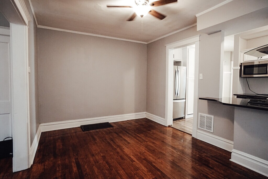 Beautifully renovated 1 bed / 1 bath apartment in South City — 750 sq ft of thoughtfully updated living space with finishes that stand out at this price point. - The kitchen was fully redone with granite countertops, white shaker cabinets, and a complete stainless steel appliance package including dishwasher, range, oven, vent hood, and microwave. The bathroom features shiplap accent walls with modern black fixtures. Original hardwood floors run throughout the main living areas. In-unit washer and dryer included. - Additional highlights: barstool counter seating, ceiling fans, front and back door access, basement storage, and surface lot parking in the rear. - Owner pays water, trash, and sewer. Tenant pays for gas and electric. - Located in South City near Tower Grove Park, Hampton Village, The Hill, and Francis Park. Easy access to I-44 and I-55. - 12-month lease. Tours are scheduled for qualified applicants following completion of free screening application — credit and background check required following tour at tenant's expense (~$35). No prior evictions. Income verification required. Pets considered case by case.