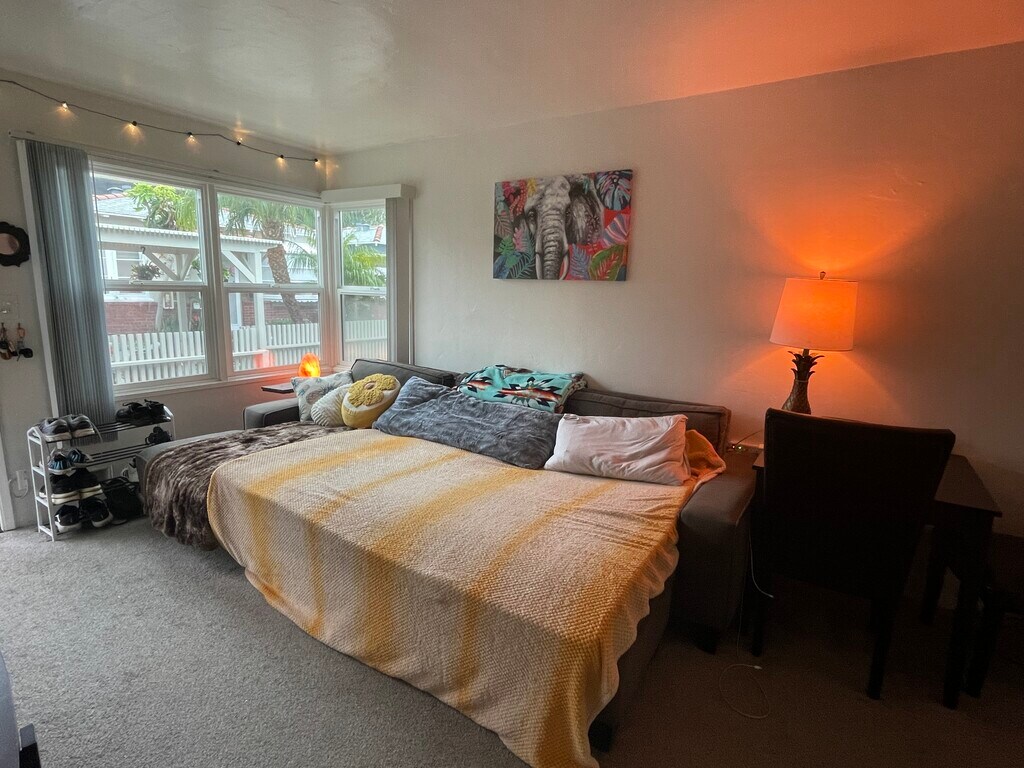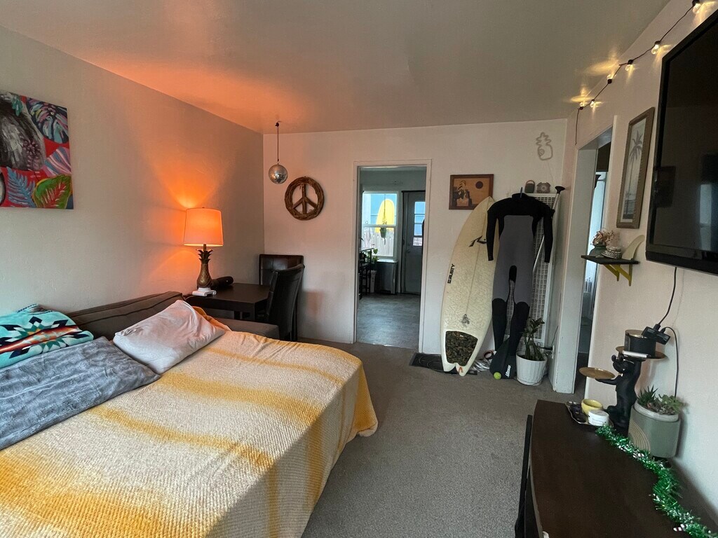 Ocean Beach starting Jan 1st 2026 - rent is $1,425 + utilities p month due on the 1st of every month. One and a half blocks from the beach. Shared laundry with the other 3 units. Bedroom could come furnished as shown if you would like, if not it will be empty and ready for you. Bedroom window has a view to the back patio and a closet with upper shelves. Bedroom also has a ceiling fan with light. Bathroom is clean and freshly remodeled. Carpet and some appliances new as of this year. Outdoor patio gets lots of sun and provides space for extra storage. All the neighbors are super cool and like to hang and surf as well. A little about me: My name is Kollin I am a male 33 years old I recently moved to this house from Denver with my girlfriend but she is about to move back to Hawaii. I like to surf, snowboard, bike, and hang out on the beach with friends. I enjoy making dinners for friends and socializing. I love plants and gardening. I like to go out for music and shows(usually EDM) 1 night a weekend. During the week I like to workout, chill and watch movies I keep the house very clean and tidy and it’s imperative that you do the same. Unfortunately pets are not allowed. Credit score must be 675+ to get accepted. $1400 deposit due at signing The lease will be 1 year long, if this seems like a good fit reach out to me on Insta! @K_Rage11 We can figure out a time to link up for a quick beer to see if you’d be a good fit ????