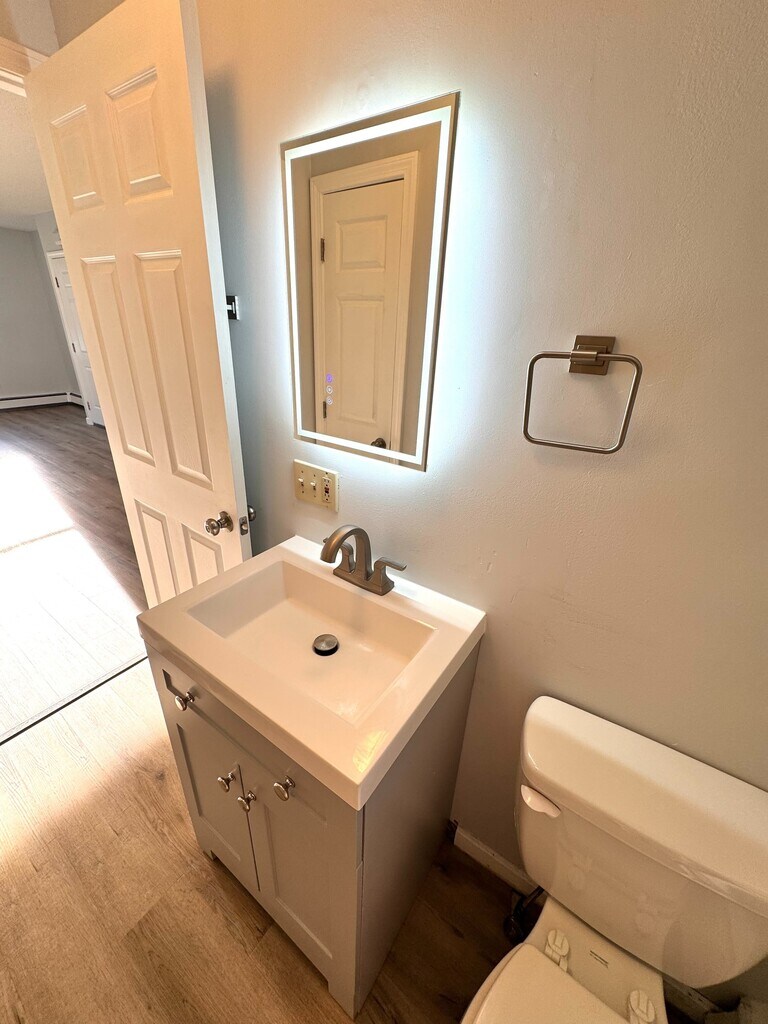 This newly renovated 2-bedroom, 1-bath apartment boasts a modern kitchen and bathroom, featuring brand new floors and fresh paint throughout. Enjoy the convenience of off-street parking, and take advantage of included amenities such as heat, hot water, water, sewer, snow plowing, and trash removal. The tenant pays the electricity.